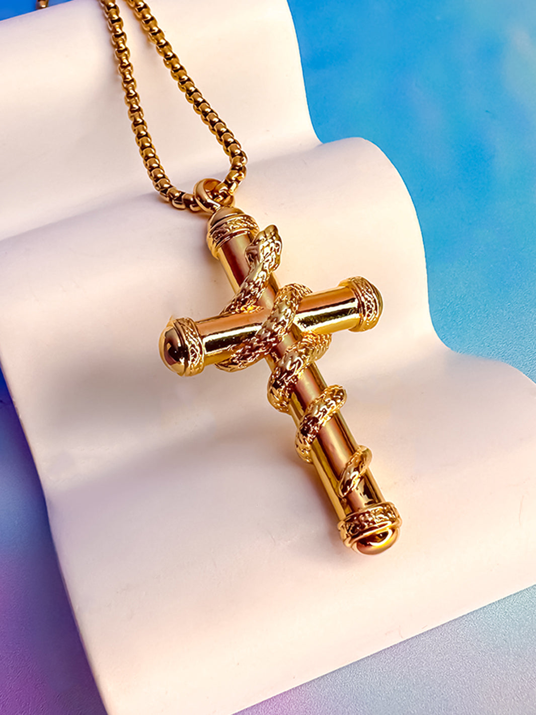 CROSS SNAKE SCOOP NECKLACE - GOLD