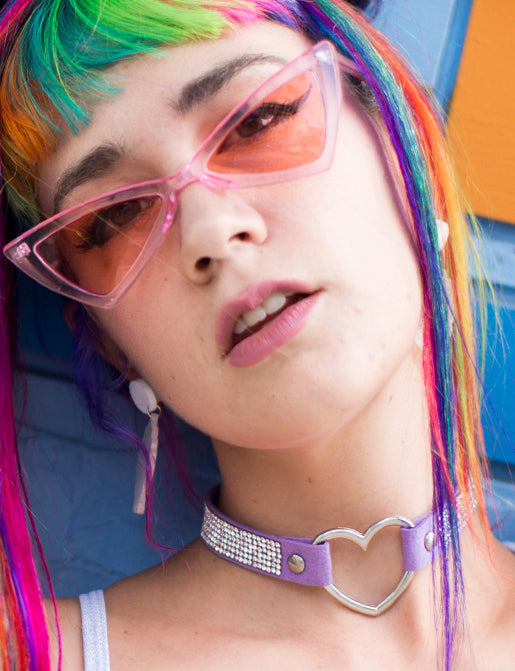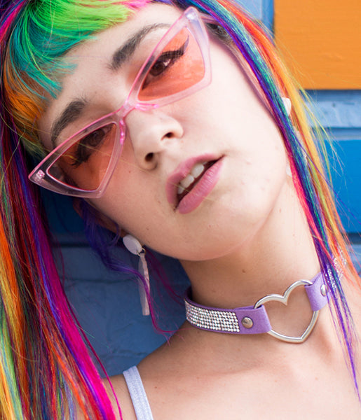 In a cute purple tone, this beauty features shimmering diamonte sides & a heart front detail.