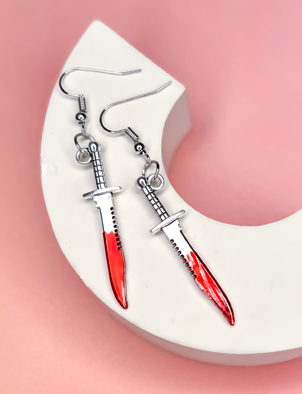 Earrings straight out of a horror movie - add them to your fit for some "don't f*k with me" energy! A nice long length, they are still a comfortable weight to hang easy-breezy from your ears.