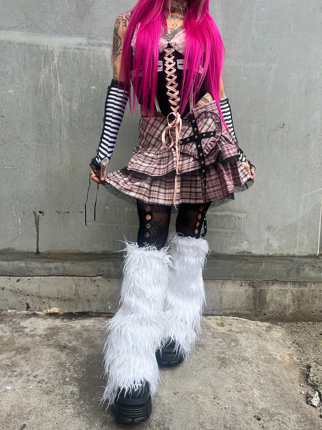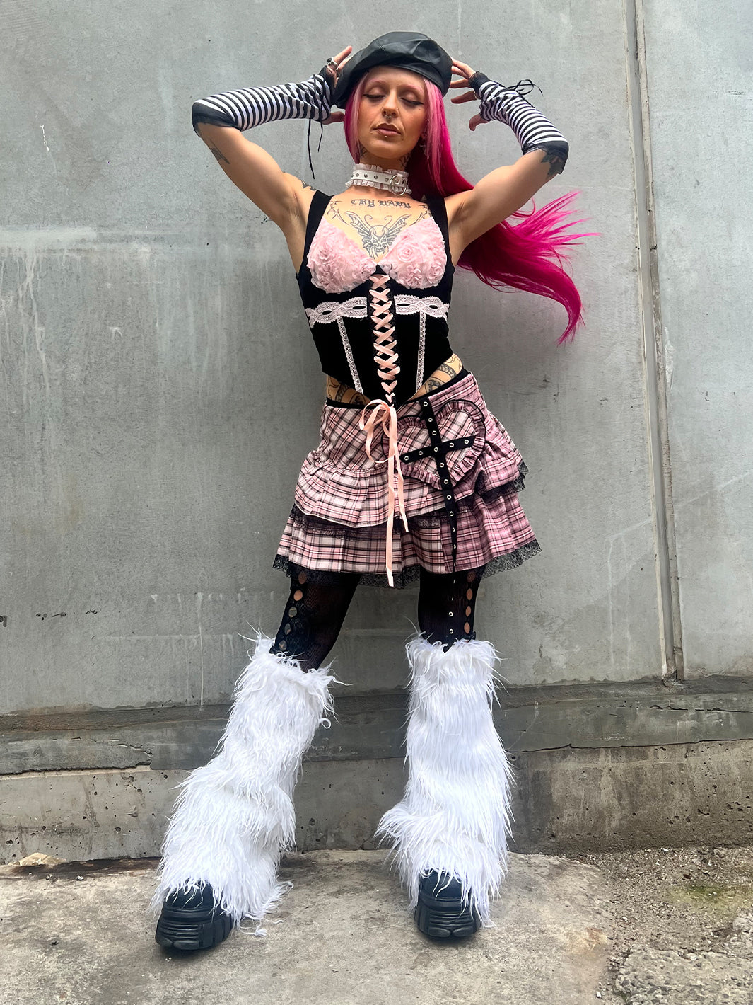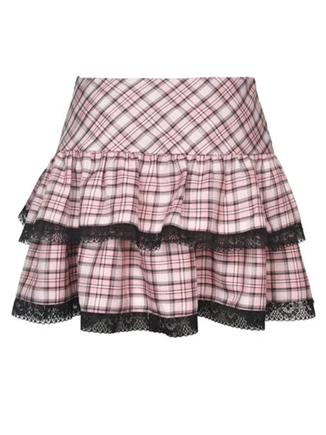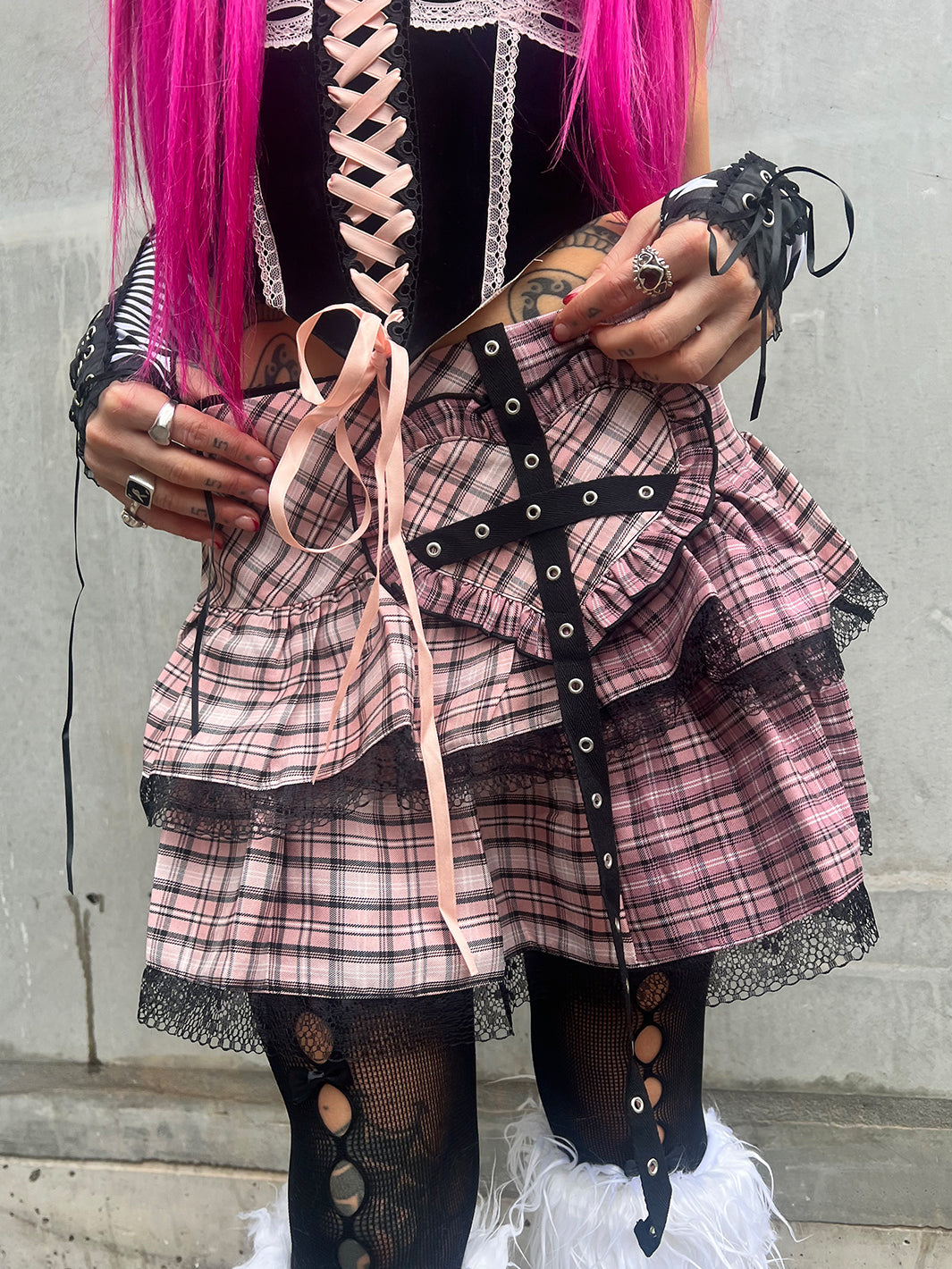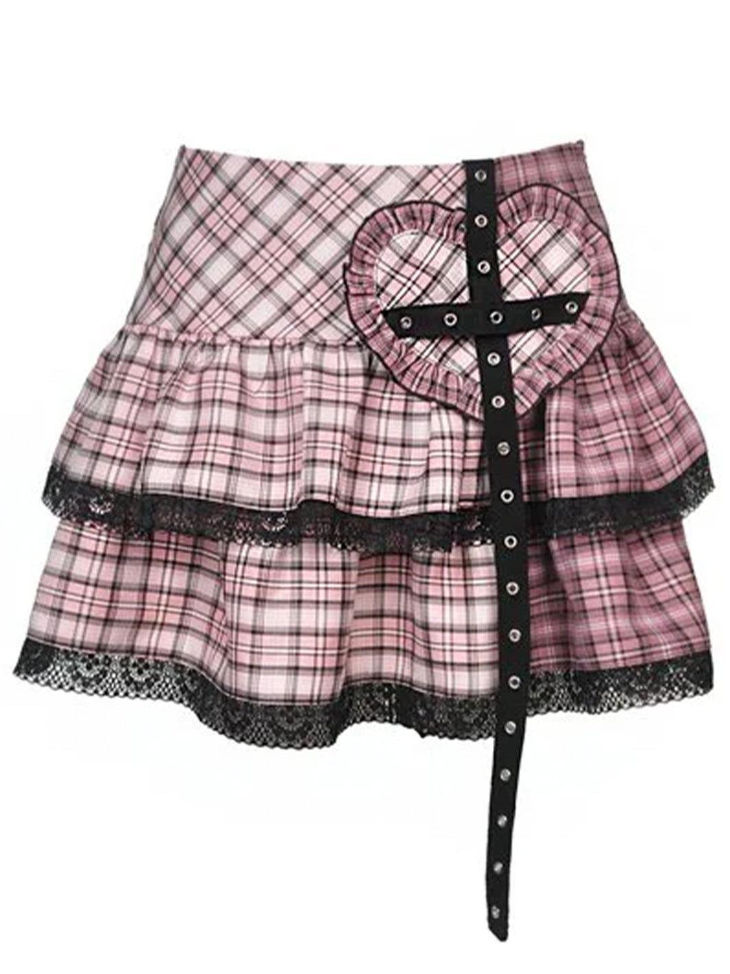 Girl math - pink, tartan and lace equals perfection! With the cutest lil heart, this skirt will be your foreva LOVE!