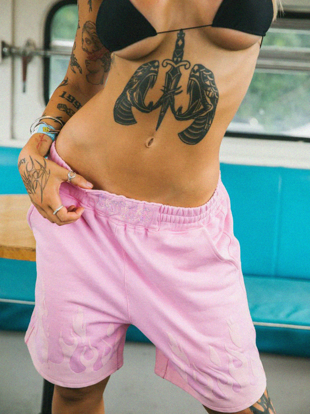 Introducing the latest addition to the Burner family - Billy bones have added fresh twist to these classic shorts! As if things weren't hot enough already... Billy Bones have turned up the heat with PINK ON PINK PUFF PRINT FLAMES. Pink is the new black baby!!
