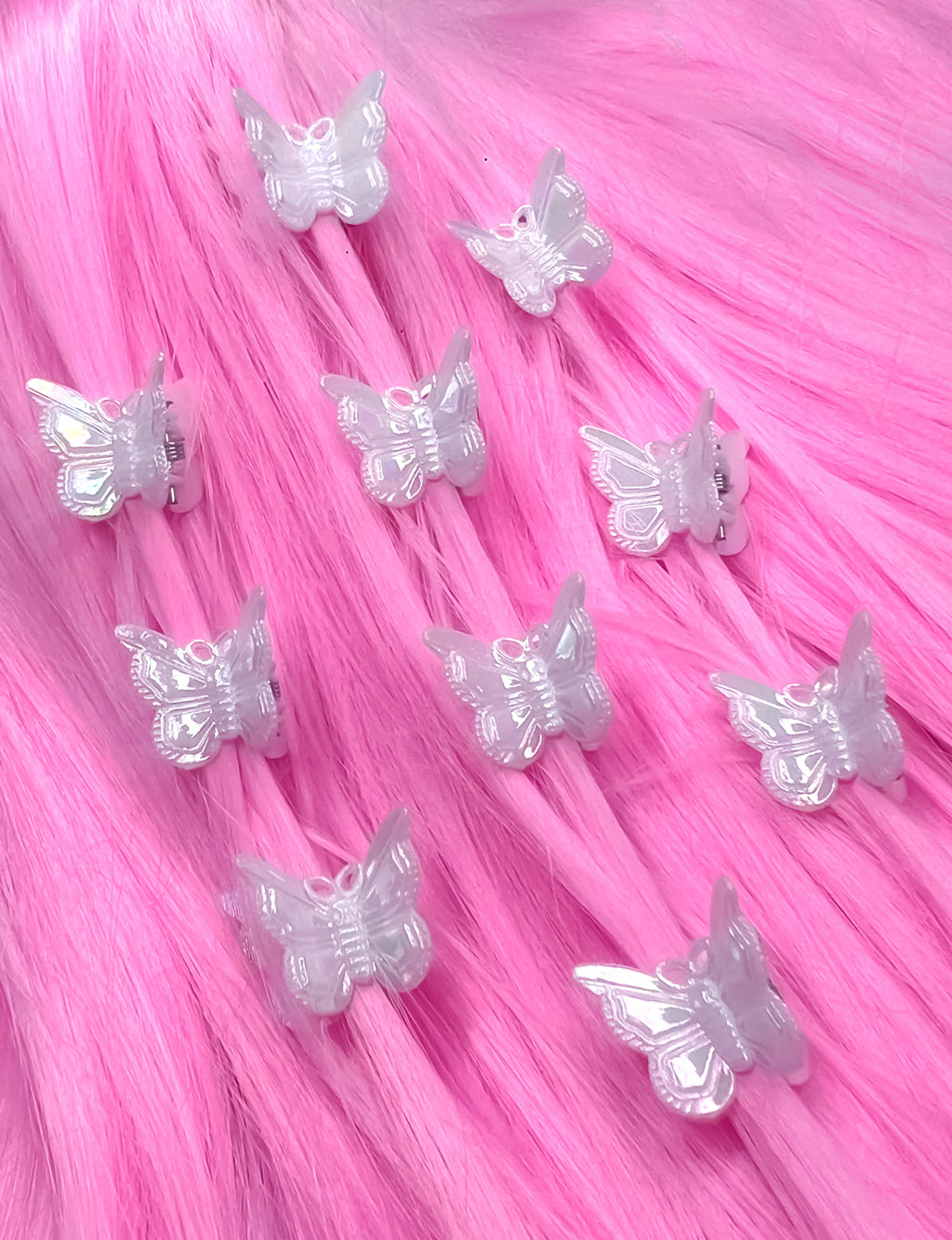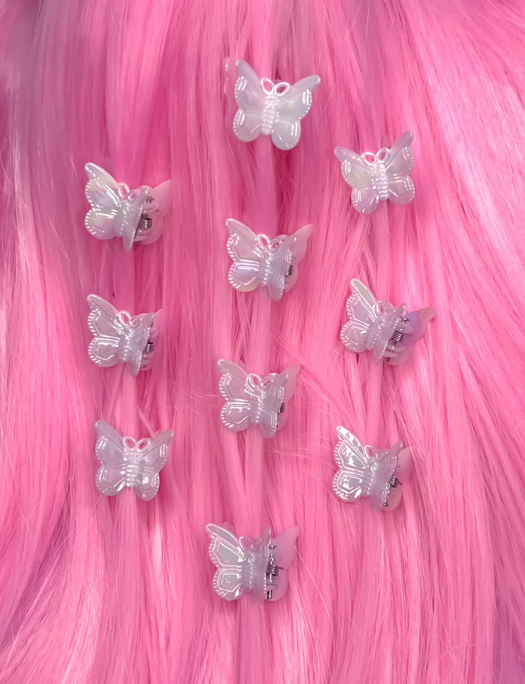 Throwback! Cover your head in as many of these cute suckers as you can! In your pack you get 10 x Butterfly Hair Clips & to top it off they come in a cute lil fabric pouch!