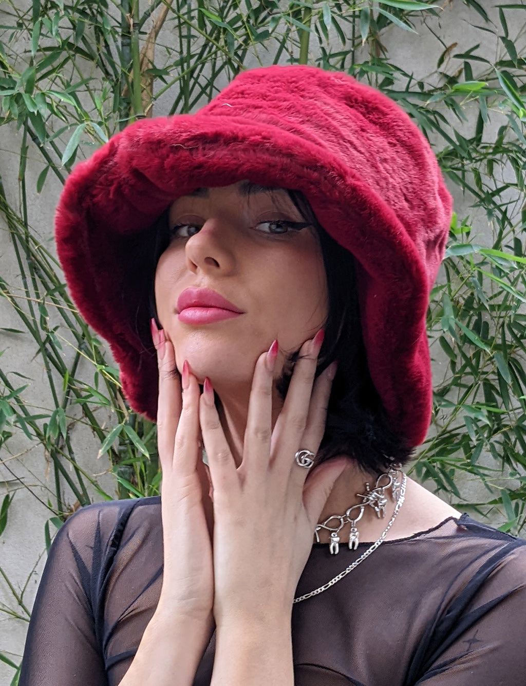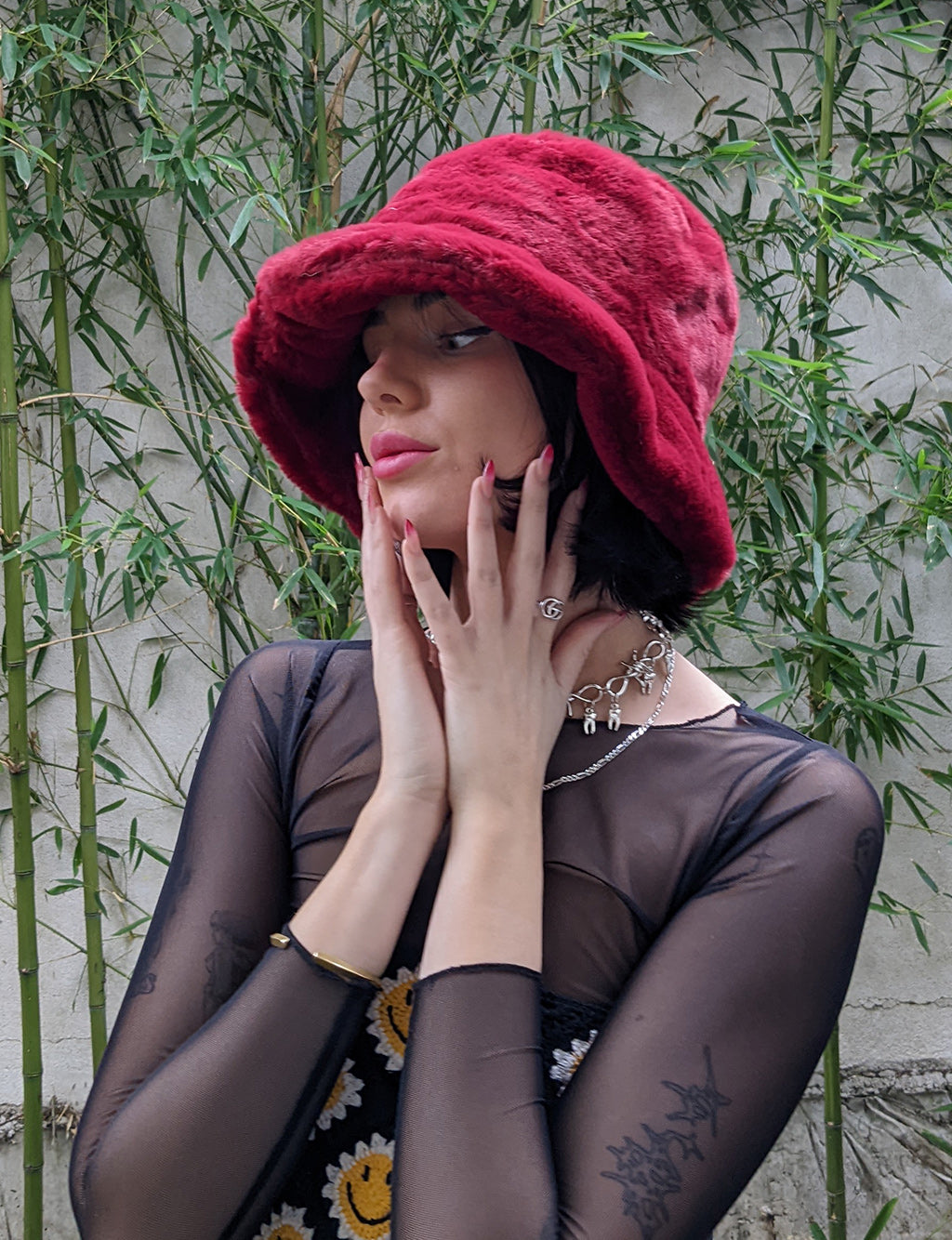 The dang CUTEST lil Catfish Fuzzy Hat in maroon! How freaking cute, we can't get enough! So 90s vibe we need it in all colourways!