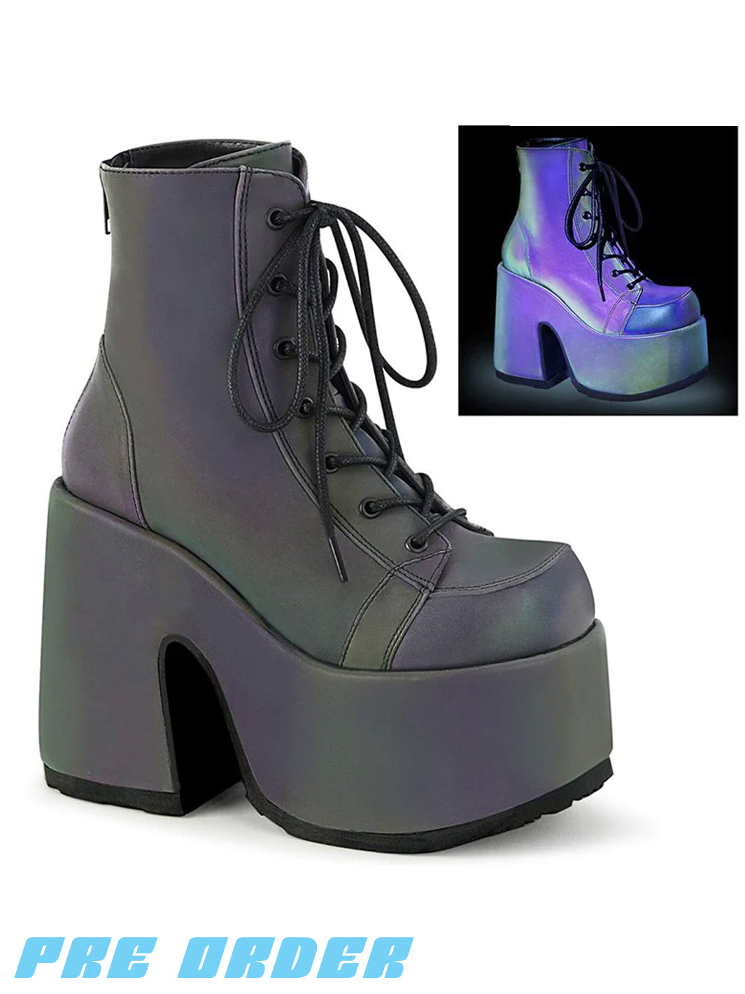 DEMONIA CAMEL-203 BOOTS - GREEN REFLECTIVE ✰ PRE ORDER ✰