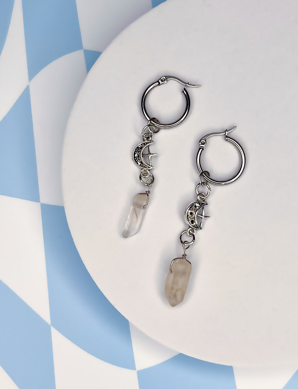 These earrings are so dang gorg & have the beautiful Quartz crystal hanging off them. This Quartz white crystal is considered a “master healer” and is claimed to help stimulate the immune system and balance out your entire body. The ultimate crystal healing earrings.