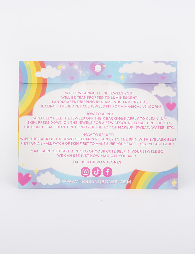 Get ready to be transported into luminescent landscapes dripping in diamond and crystal healing - These are jewels fit for a magical unicorn! These are super easy to wear, simply peel them off and stick them on - make sure you have clean & dry skin when you apply them for long wear!