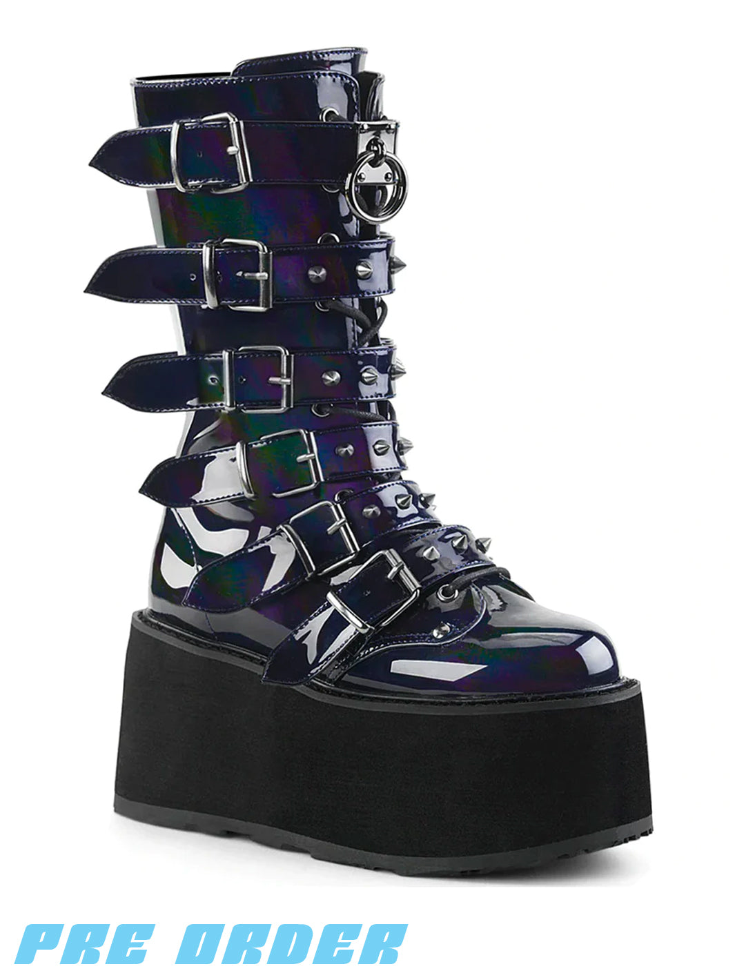 DEMONIA DAMNED-225 - BLACK HOLOGRAM VEGAN LEATHER ✰ PRE ORDER ✰