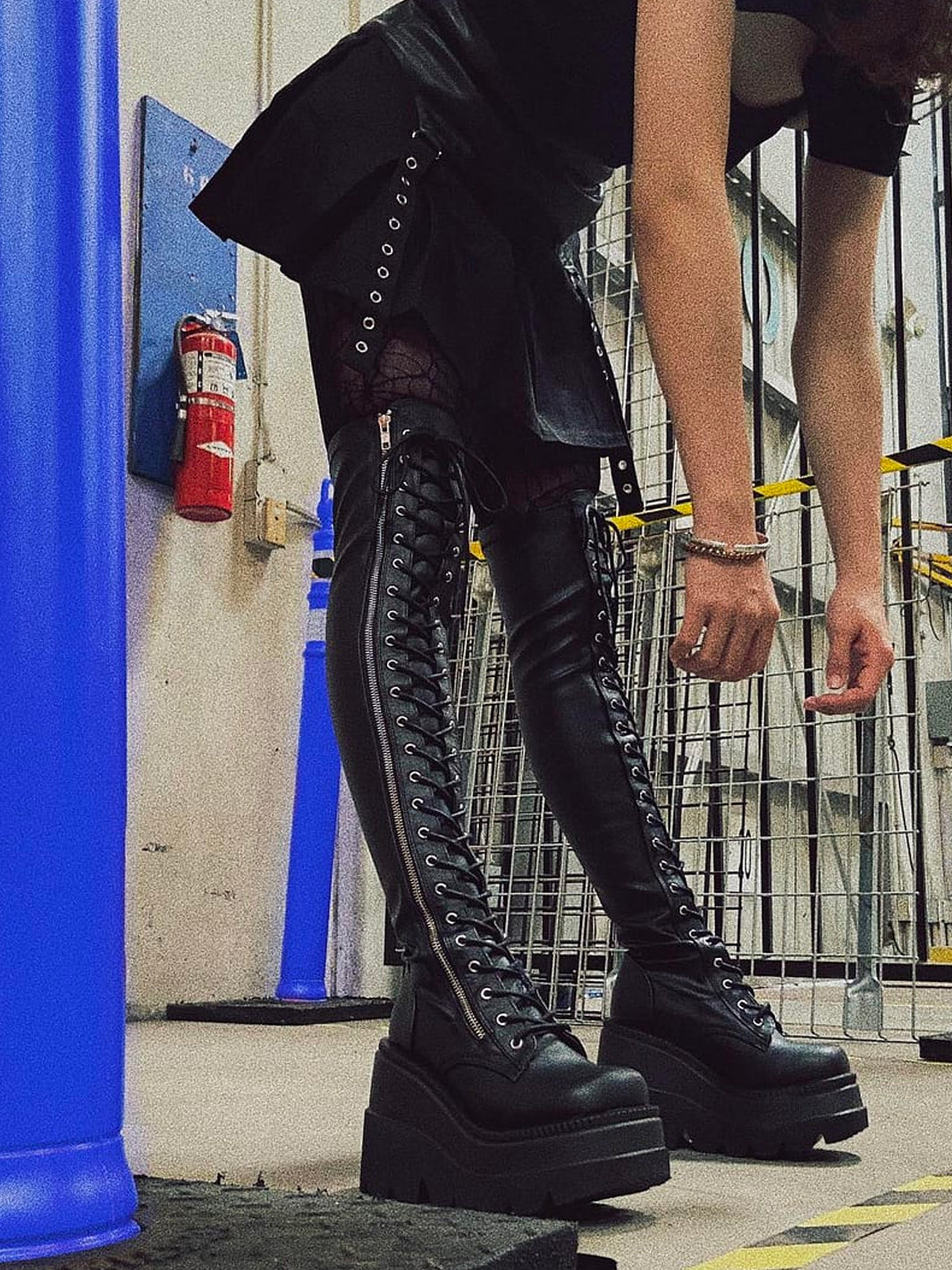 - Lace-Up Stretch Thigh-High Boot