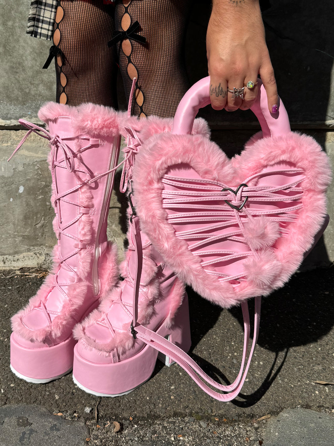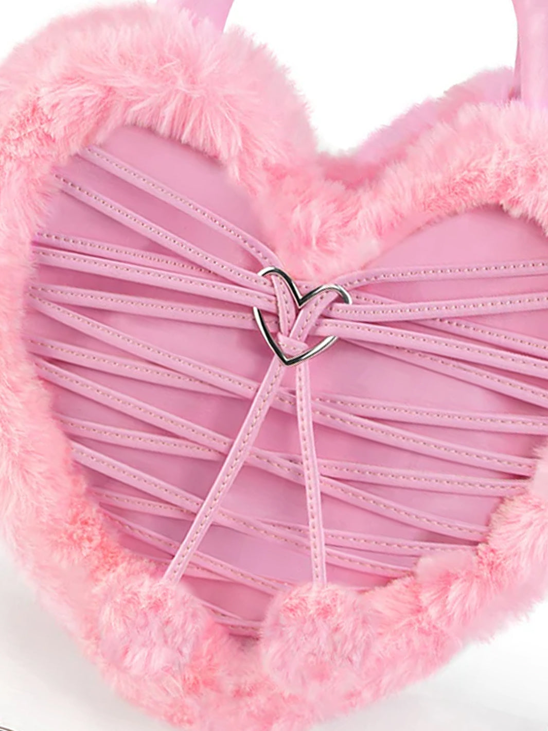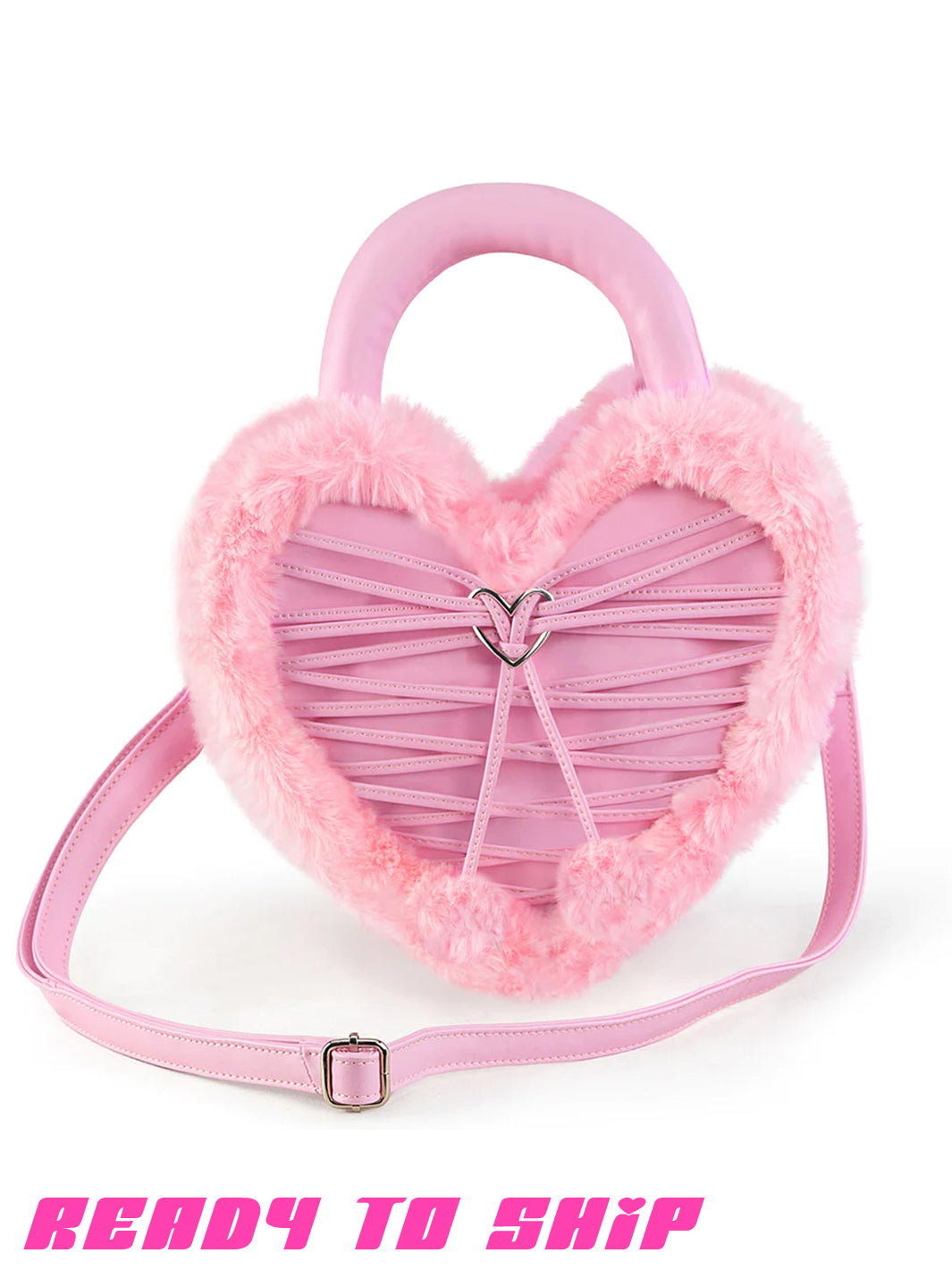 - Faux Suede Heart Shaped Convertible Handheld Purse