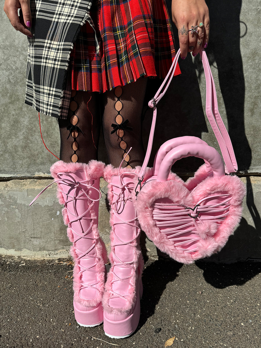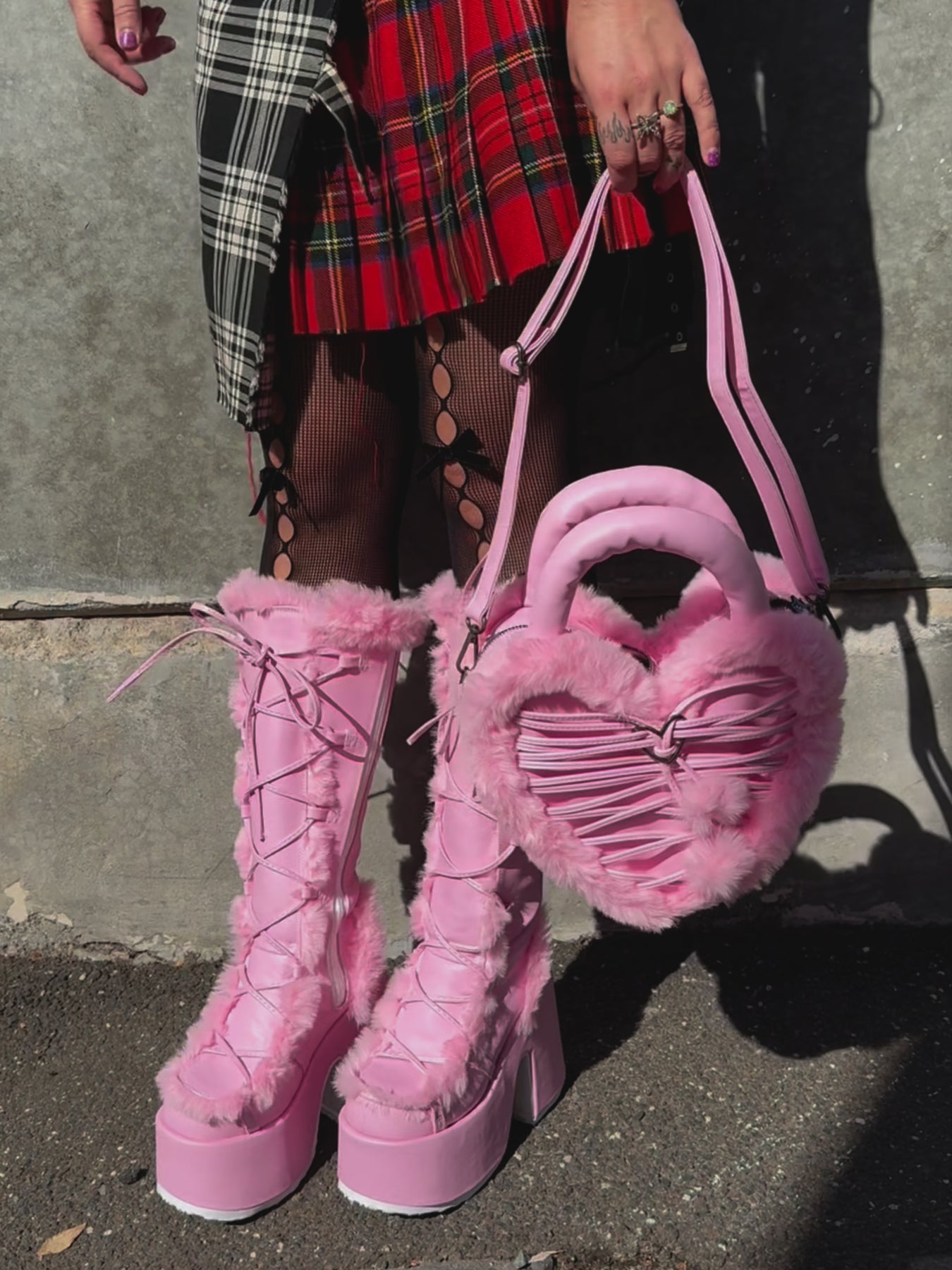 Prepare to implode from cuteness, these handheld heart shaped hang bags are too much. Made to look like the iconic Camel 311 style, if you have these boots you need this bag and if you don't have these boots you still need this bag.