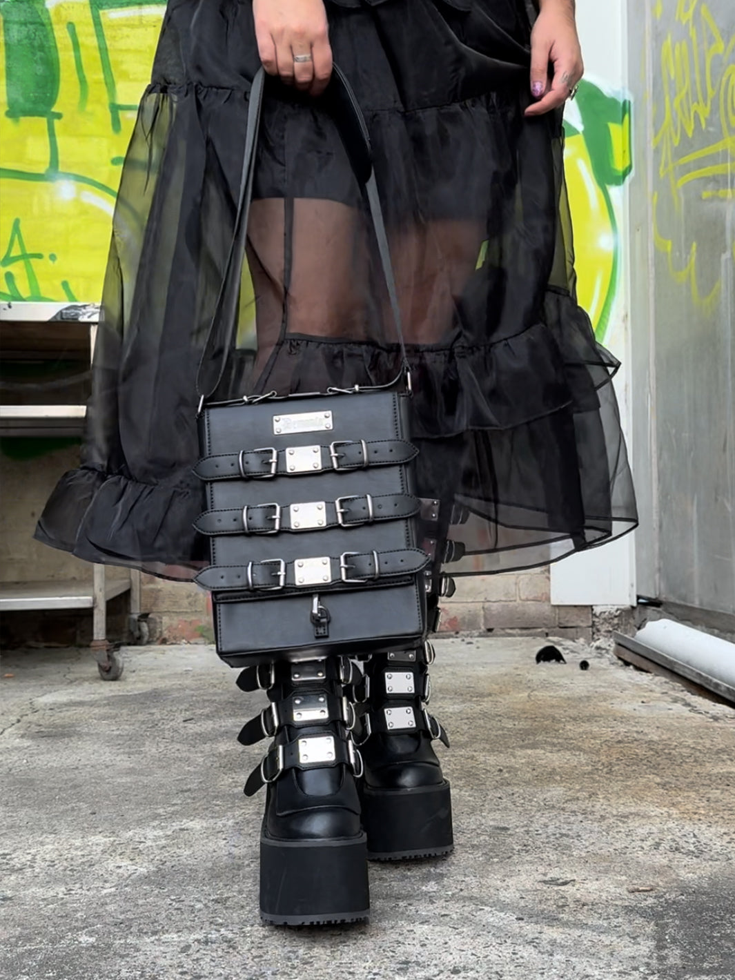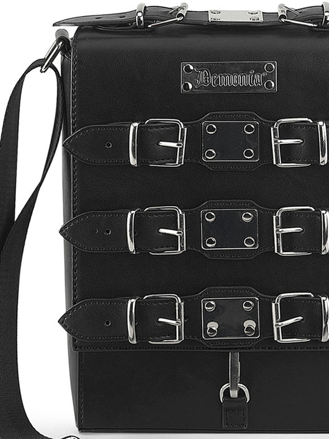 - Large Flap w/ 4 Ornamental Buckle Straps w/ Metal Plates at Center
