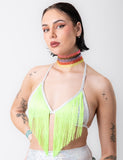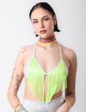 FRINGE BENEFITS TOP - PLAYA WHITE/NEON GREEN