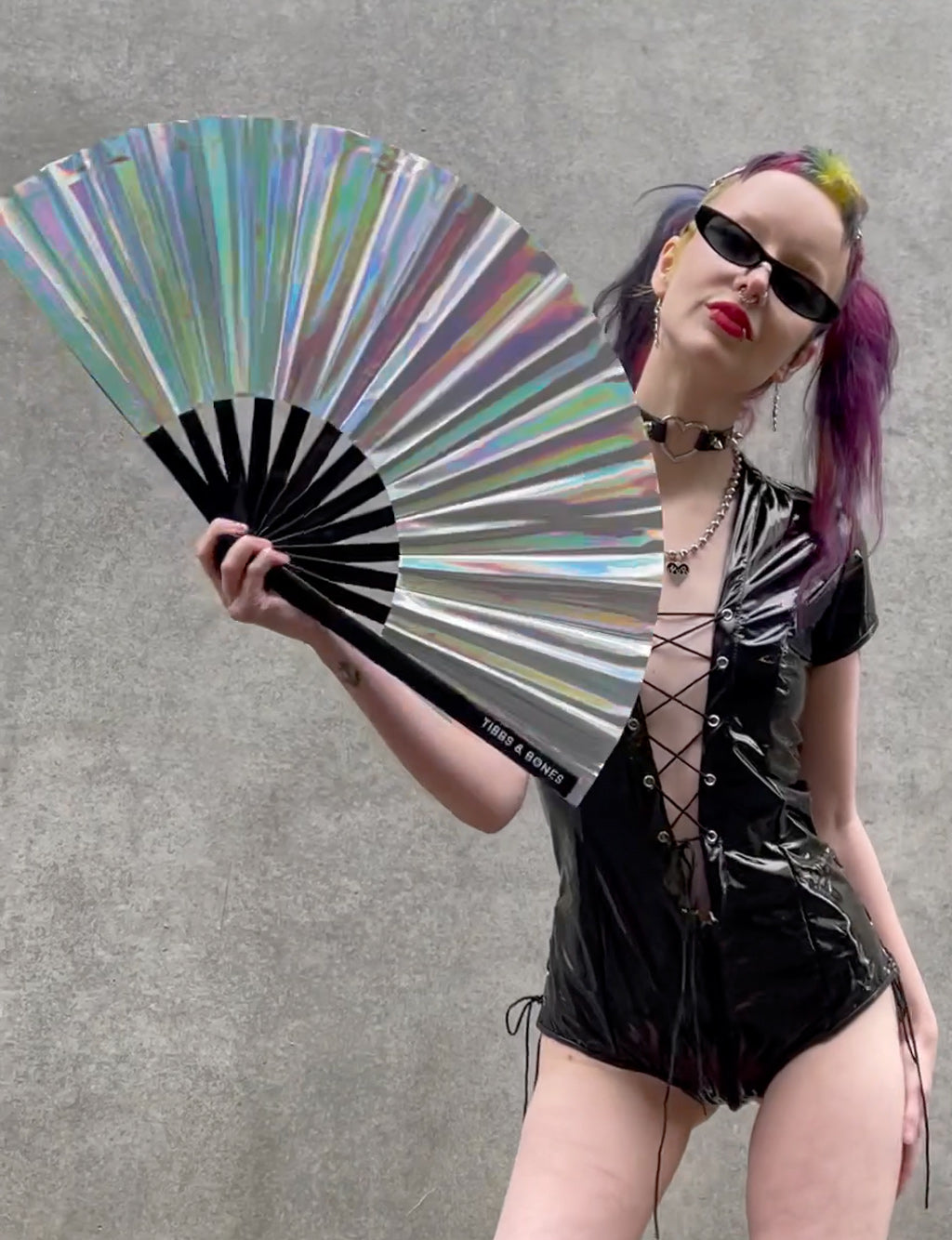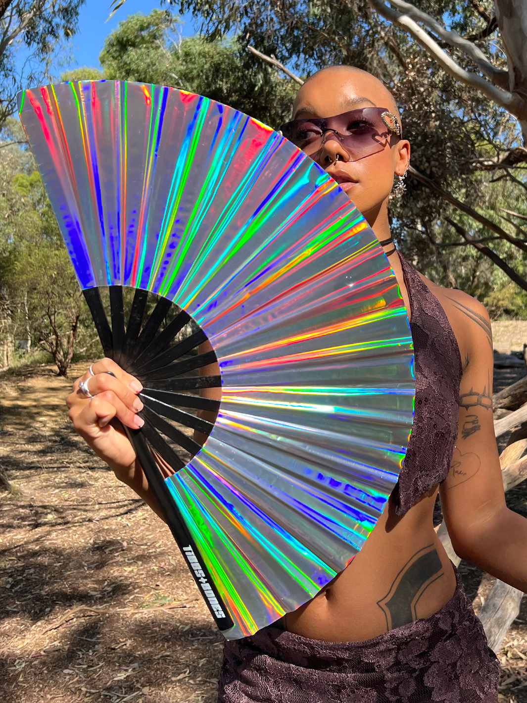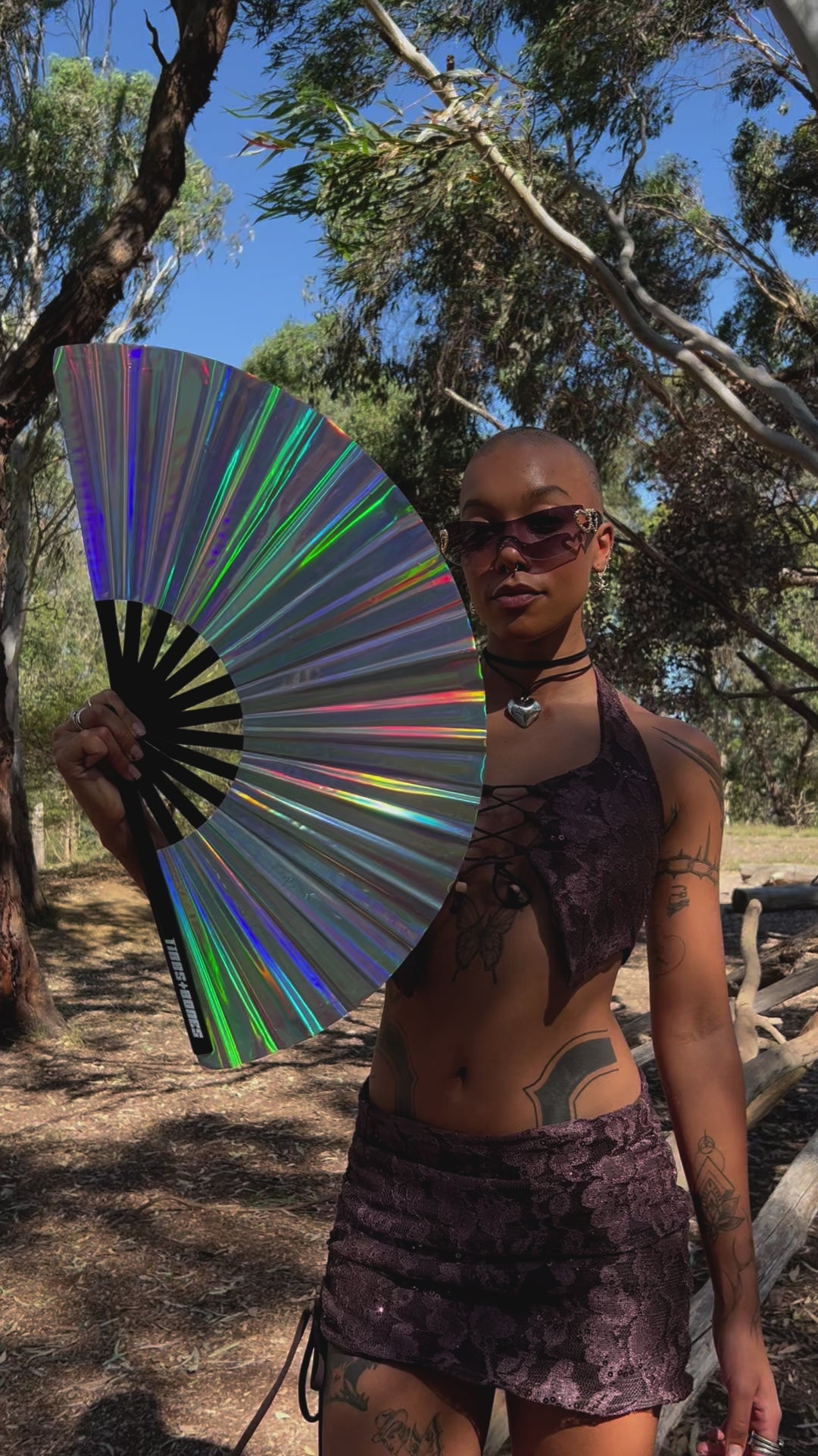 GIANT HOLO FAN - BLACK WOOD/ SILVER