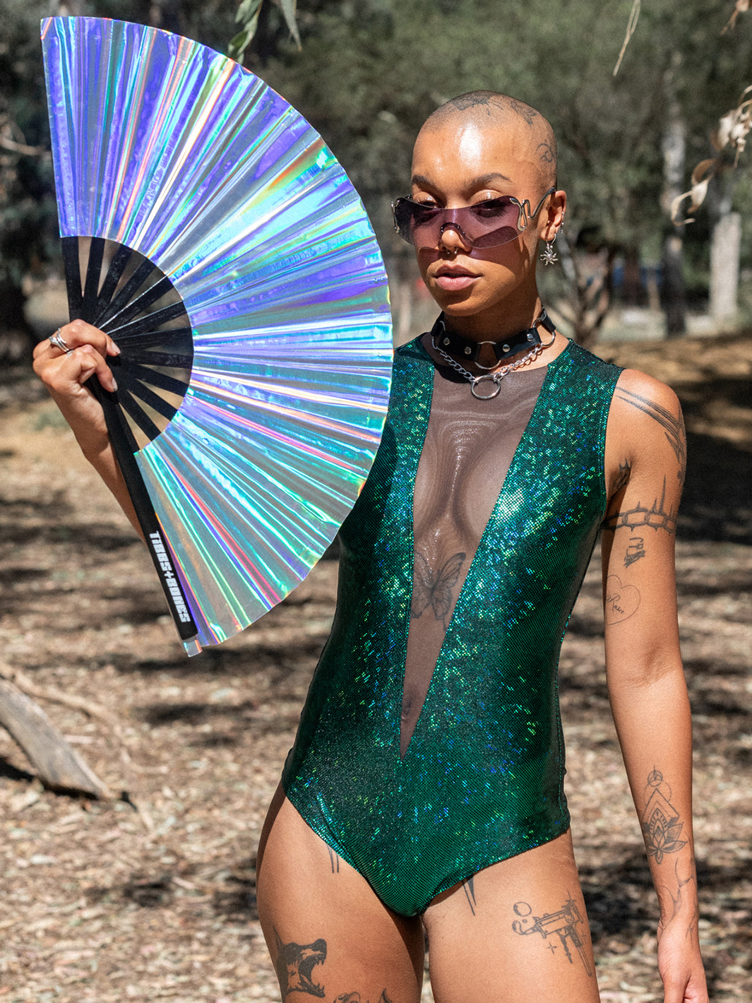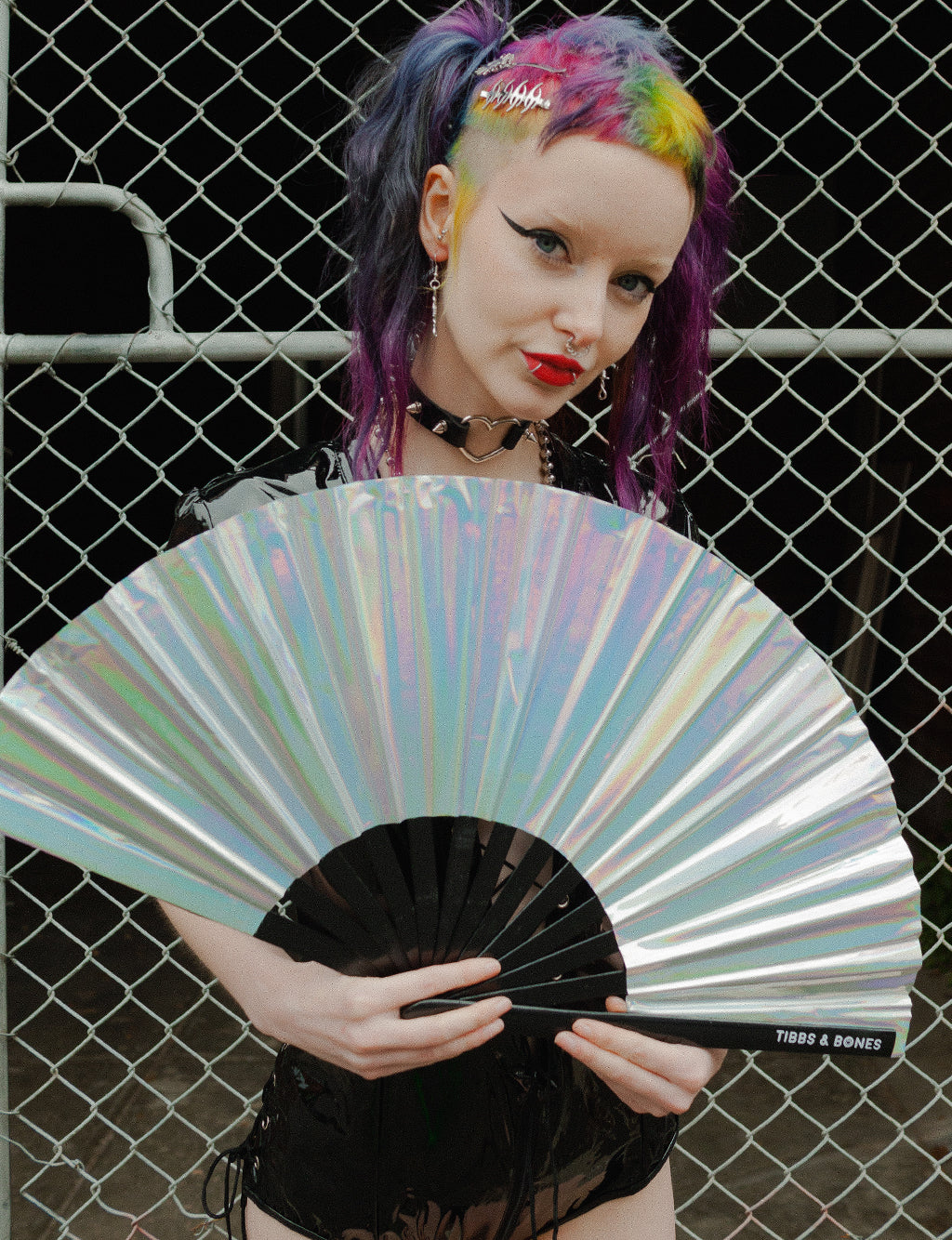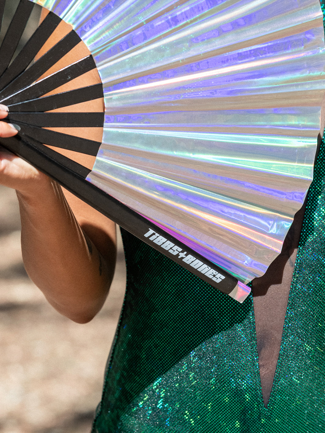 GIANT HOLO FAN - BLACK WOOD/ SILVER
