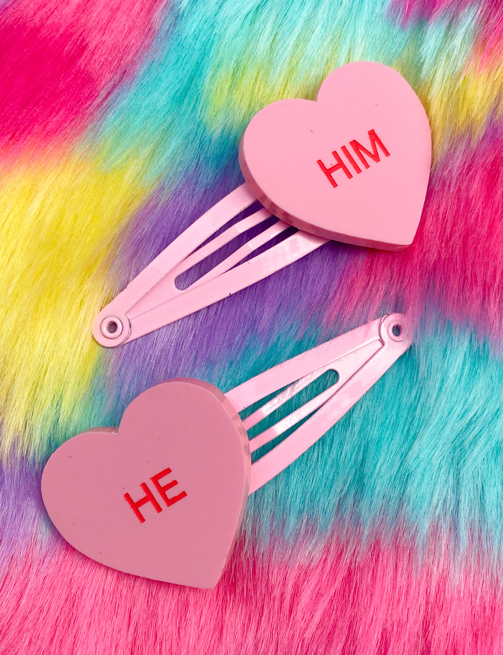 HE/HIM GENTLE REMINDER HAIR CLIPS - PINK