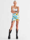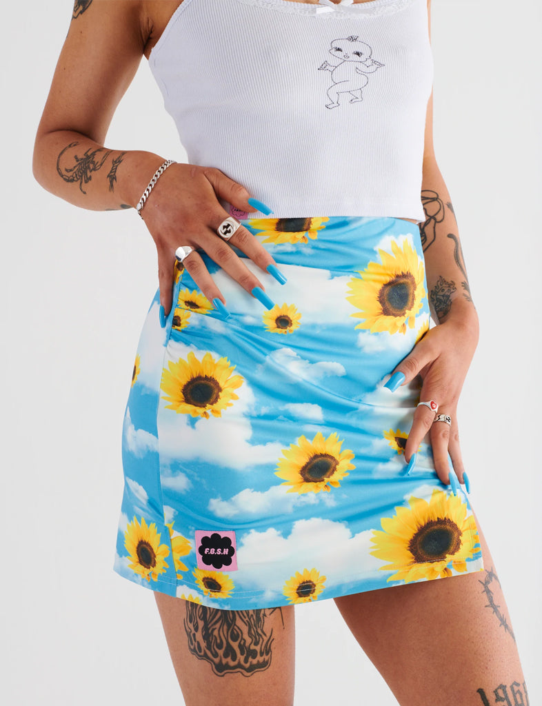 OMG ok this skirt, this print, this cut - so fkn in love with this lil mini! It has a super sexy lil thigh split with ruched detailing - super flattering and comfy to wear! Oh and as if you can go past the cute sunflower print!!