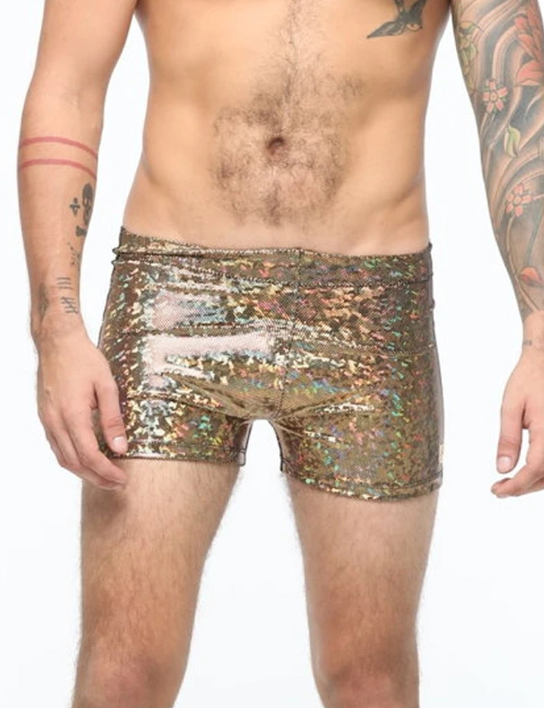 HOLOGRAPHIC MENS SHORTS - GOLD