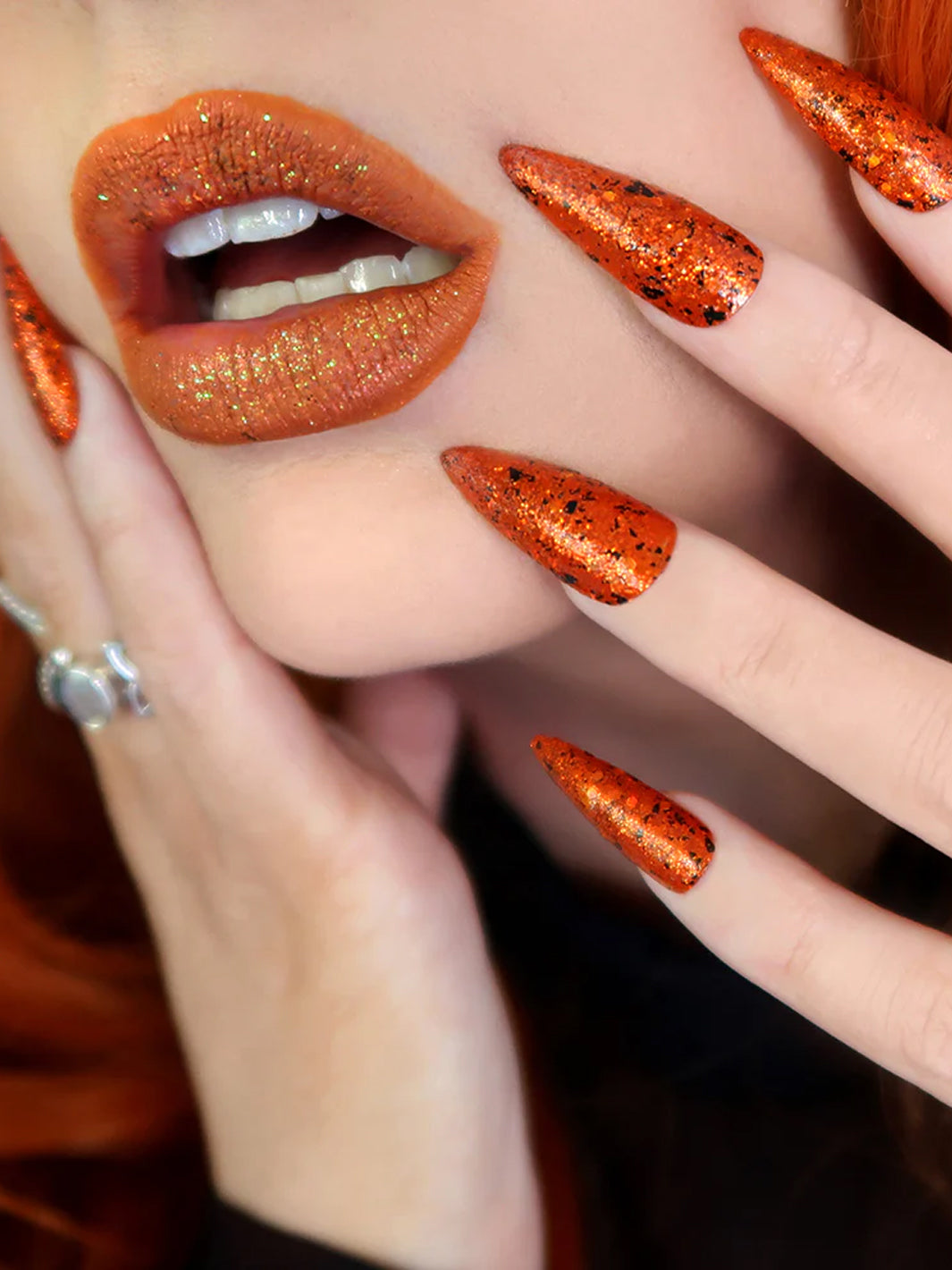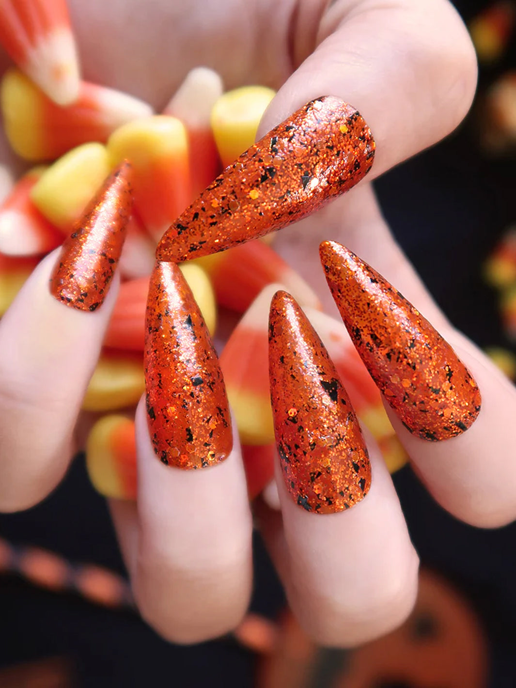This vibrant orange-tinted base is packed with a mix of orange & black glitter, creating a fun speckle vibe for your nails. Just in time for Halloween - the spookiest polish we ever did see!