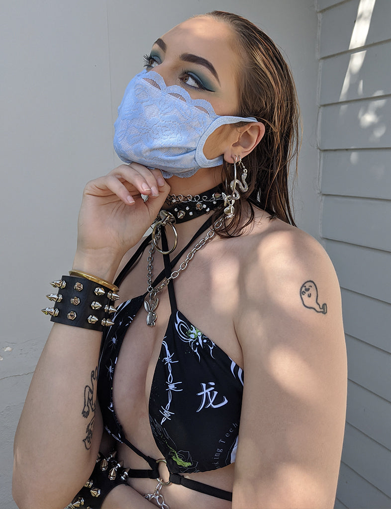 The sweetest lil lace dust mask to slip on and keep ya lungs clear! Perf for wearing at the doof - and also to the supermarket!