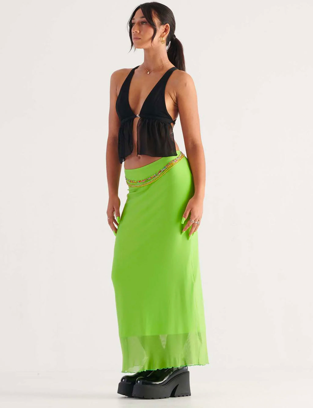 - Each skirt comes with elastic beaded belly chains which aren't attached to the garment so you can play around with different variations