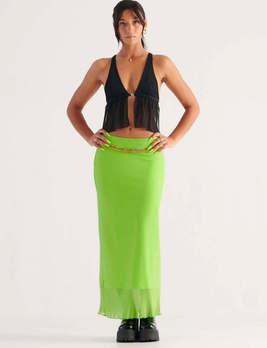 The Lita Skirt is a mid length Skirt. Such a gorgy coloured skirt and can be worn low waisted or high waisted depending on how you are feeling and what you are comfy with!