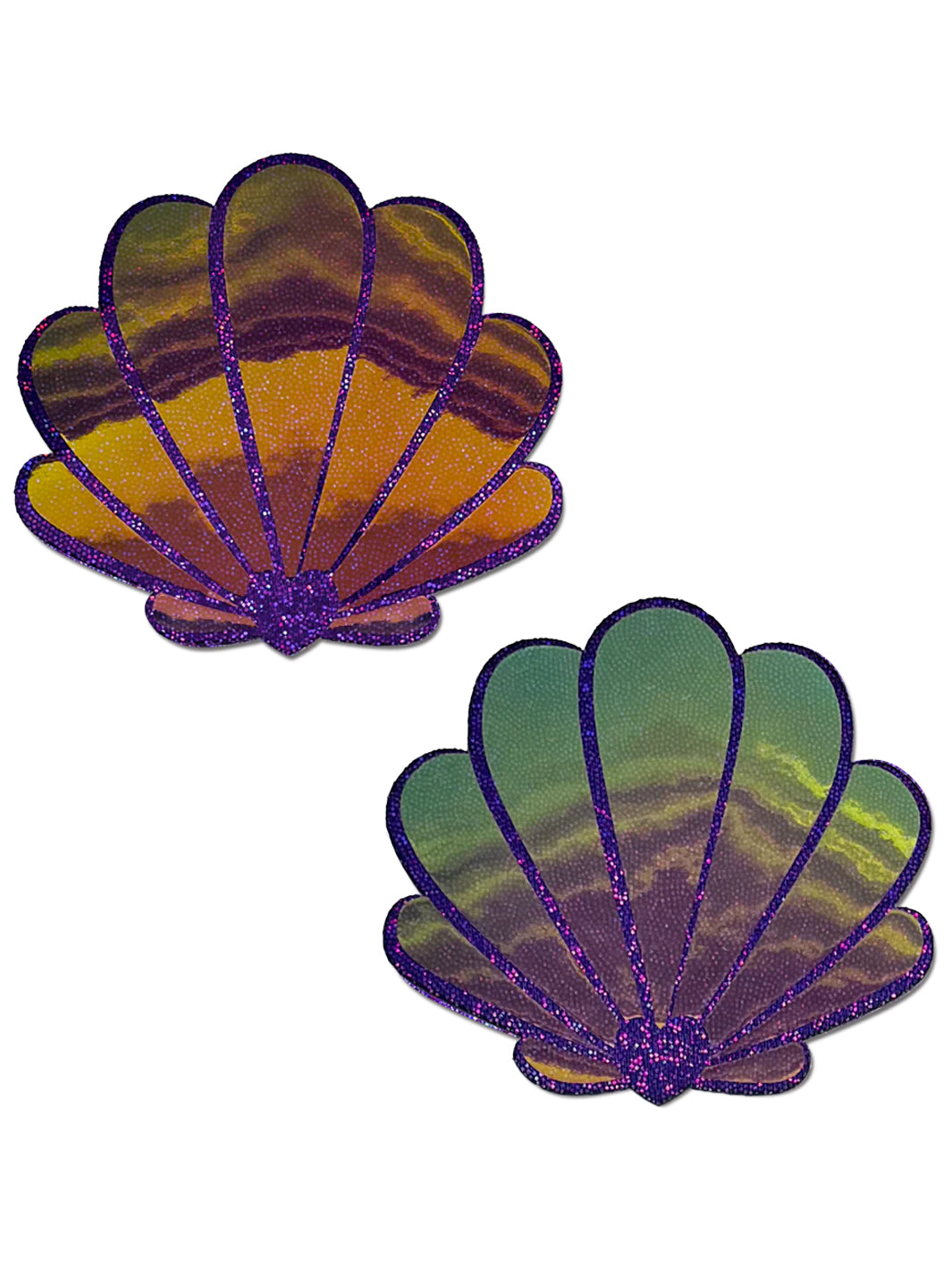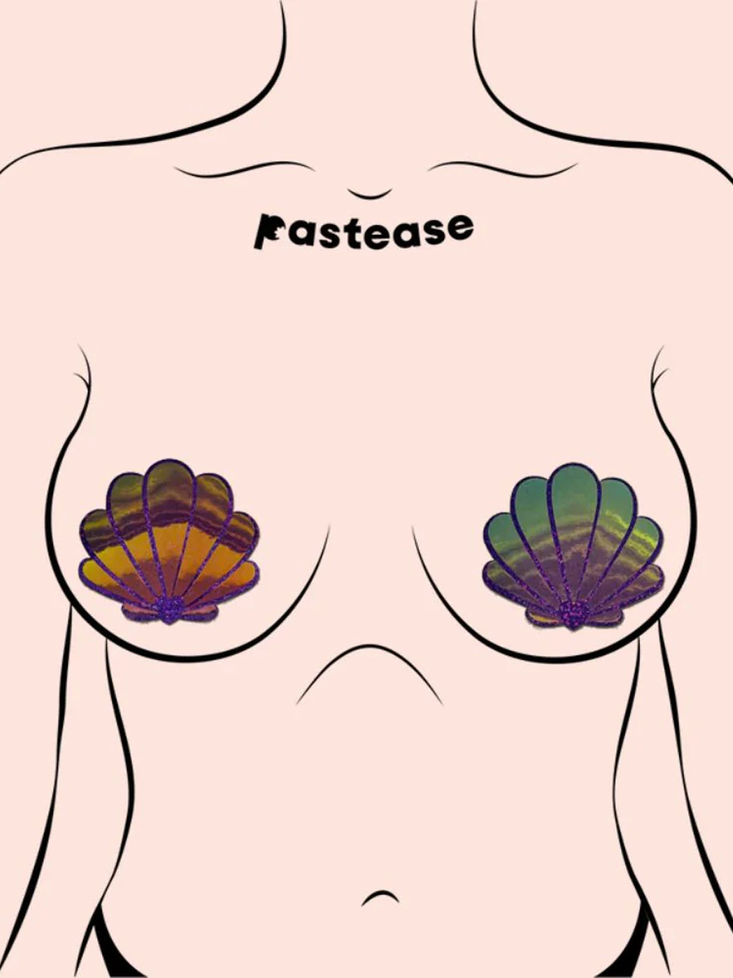 MERMAID SEASHELL NIPPLE PASTIES - OPALESCENT PURPLE & GOLD