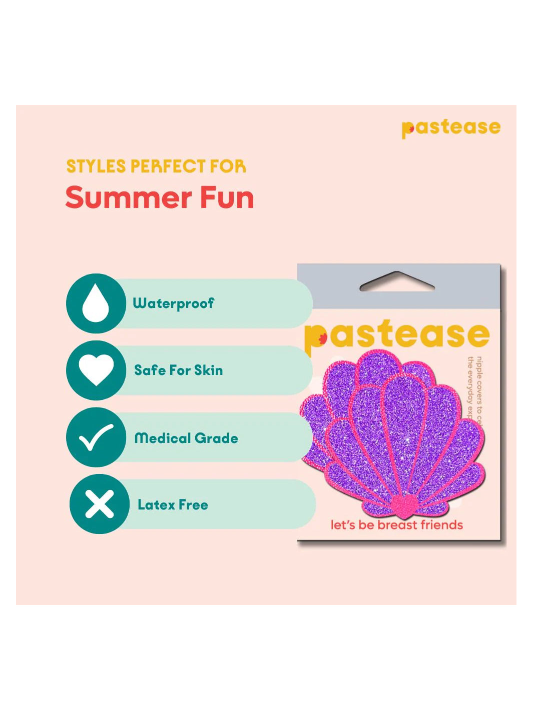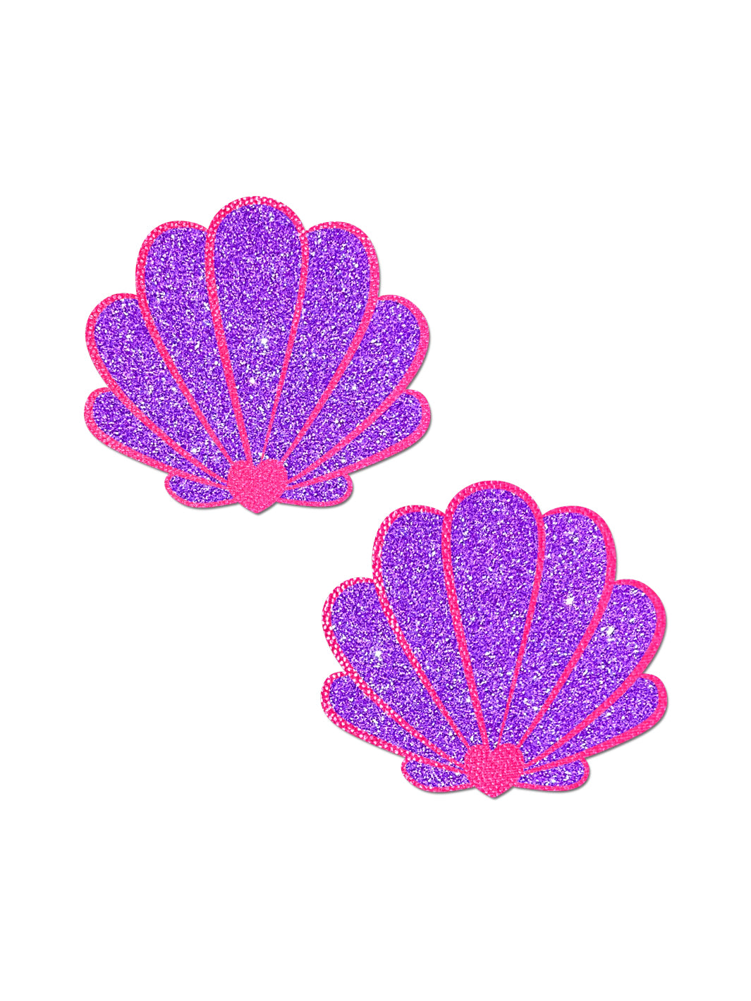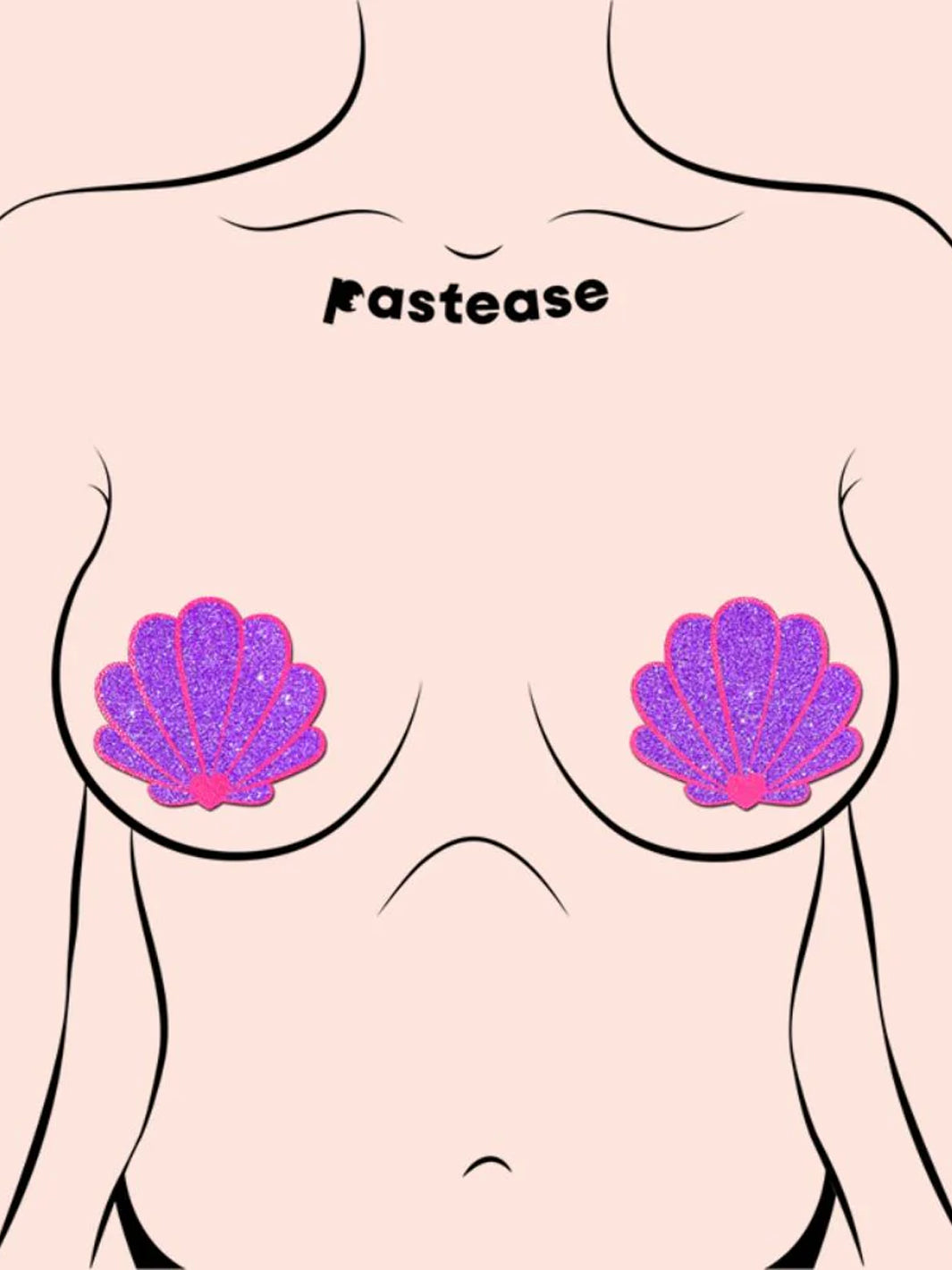 MERMAID SHELL NIPPLE PASTIES - PINK/PURPLE GLITTER