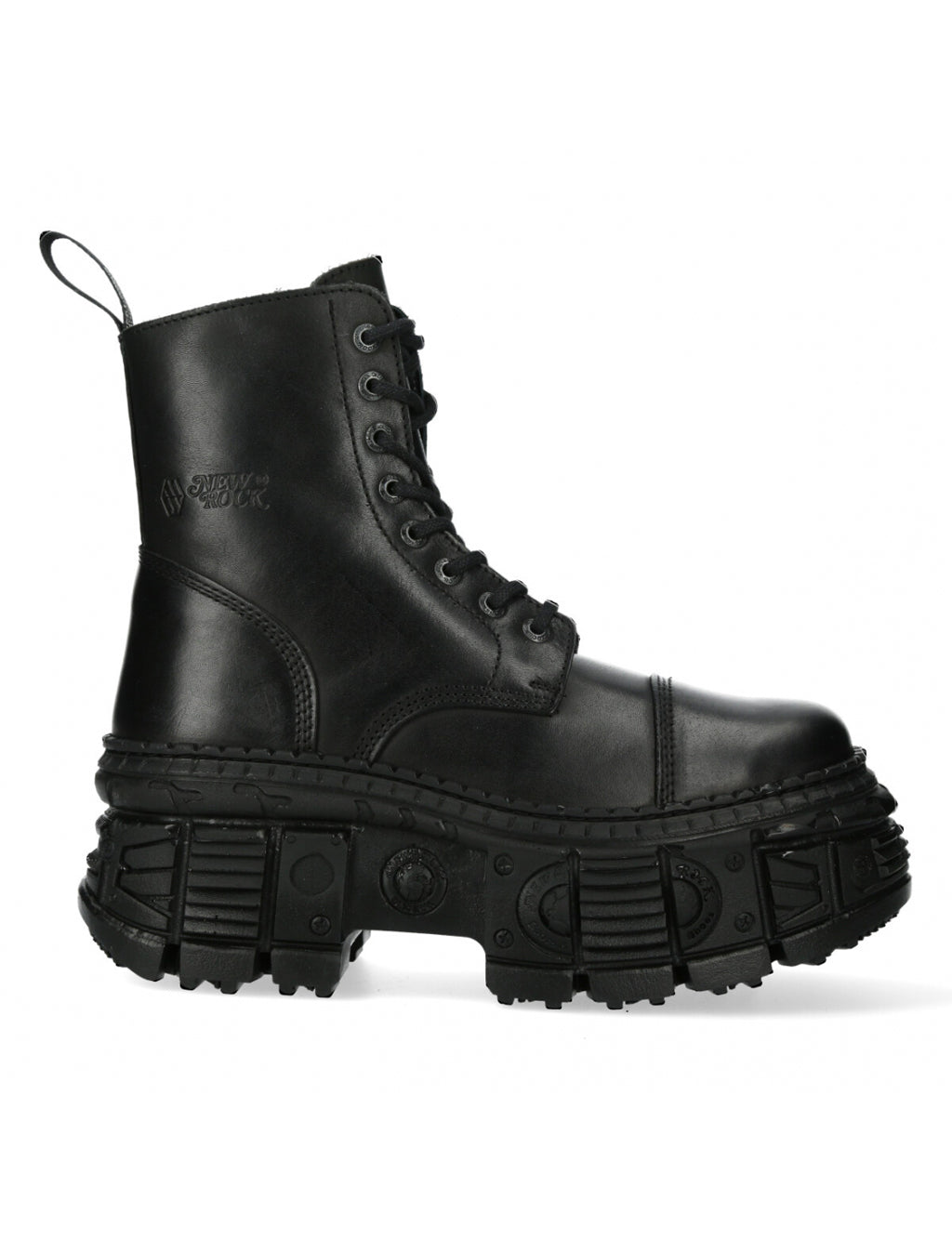 This fresh spin on a timeless classic, offers New Rock’s signature steampunk, geometric patterned touch to a combat boot. Crafted in Spain with genuine leather lining and all black detailing, this boot will edge up any look.