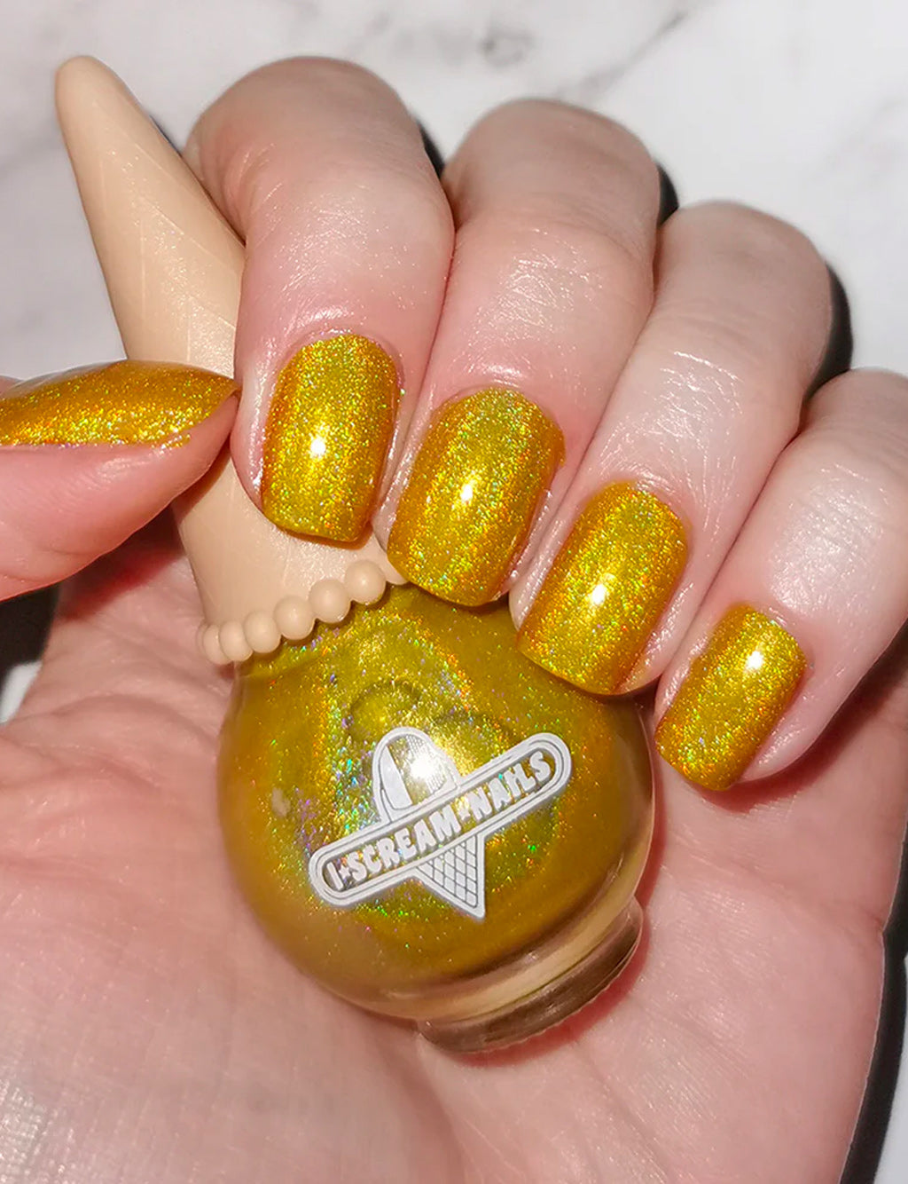 Pay me in holo is the shade you want on your nails. Packed with the most incredible linear holographic pigment there is.