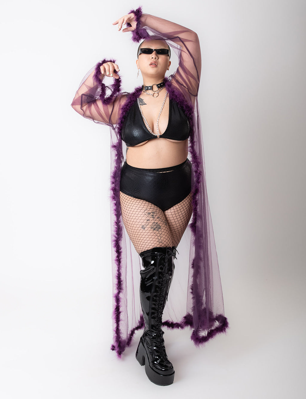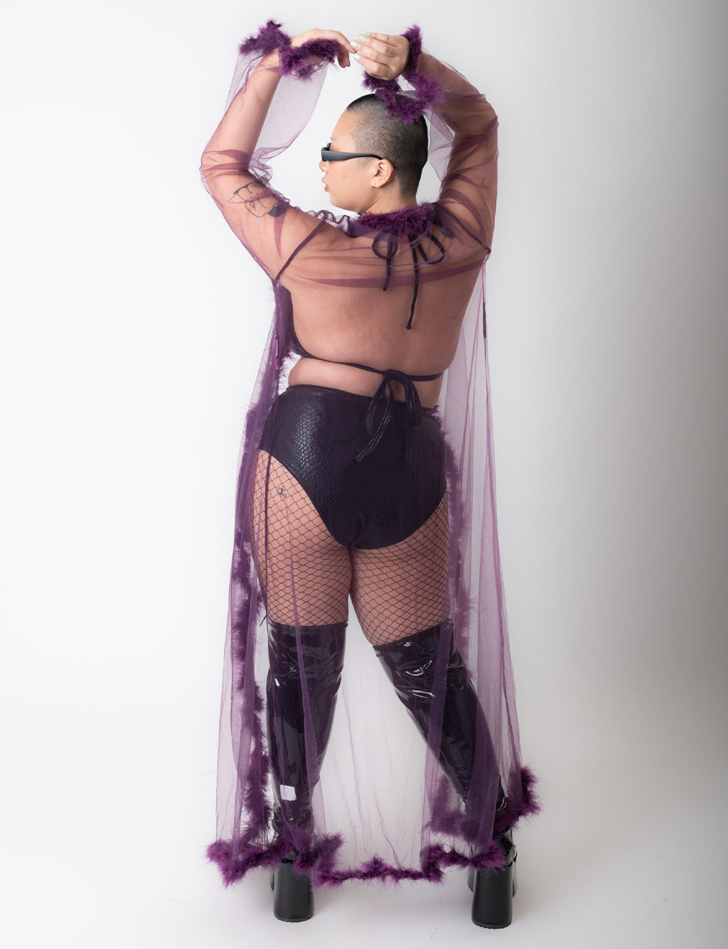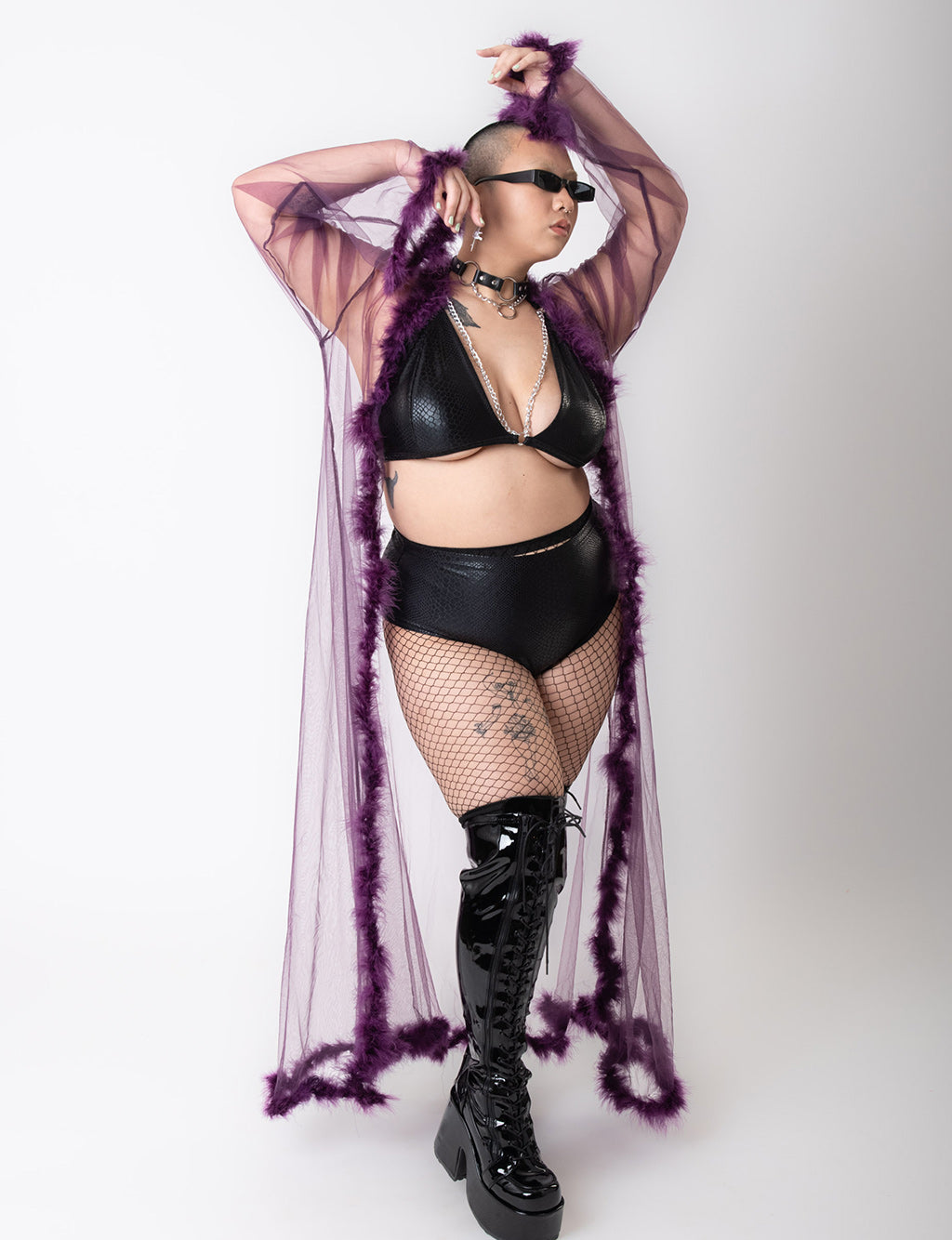 In the sexiest of purple tones, this kimono is everything chic! With a soft & fluffy trim, we love slipping this on to sass around the house or pop outside in it to live your fairy-fuelled fantasy!