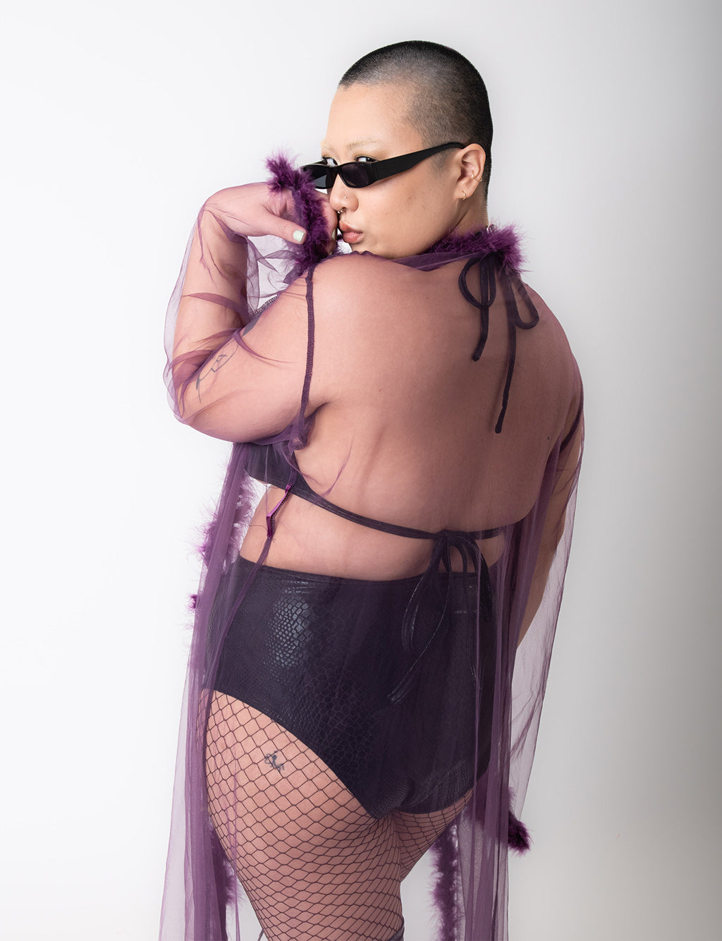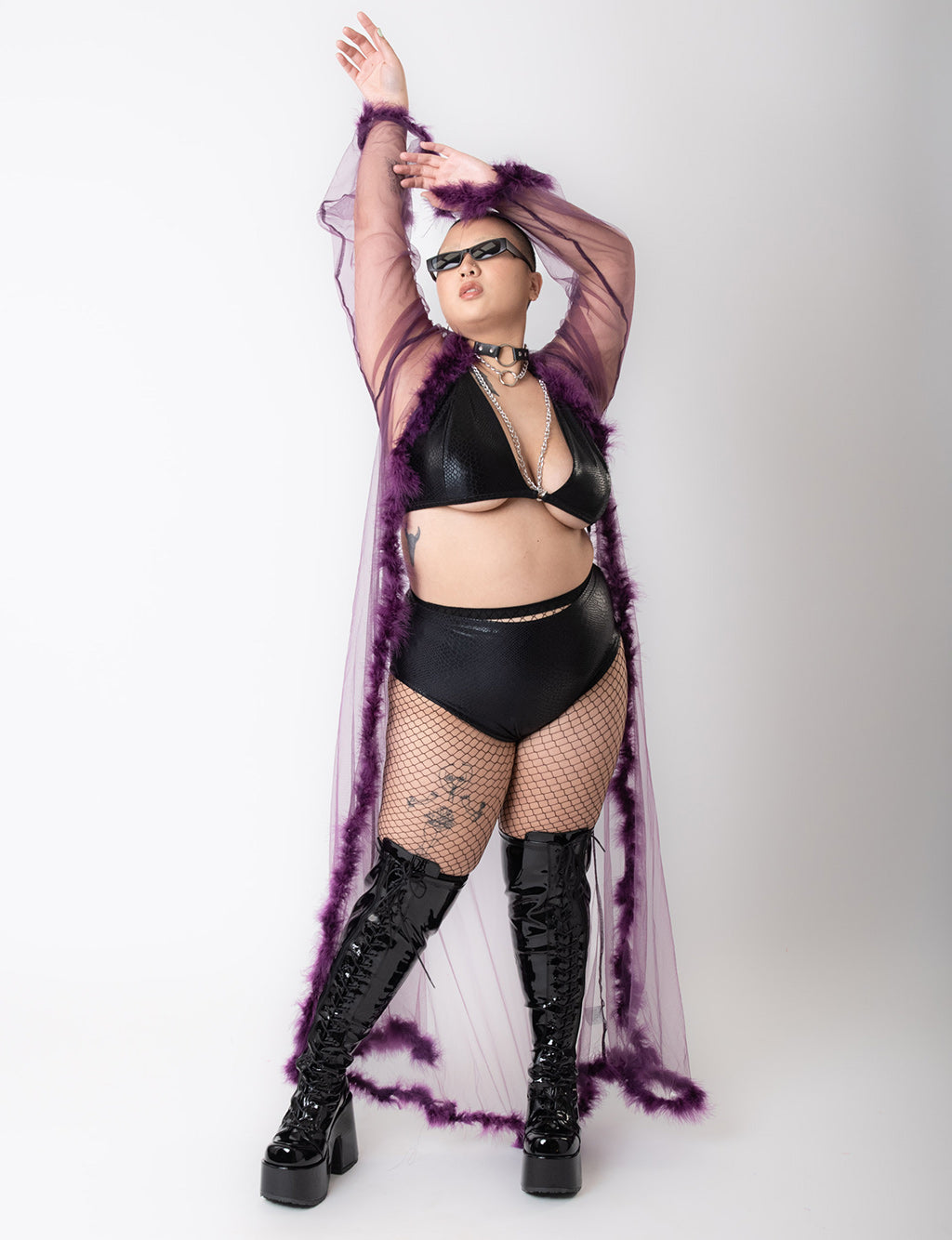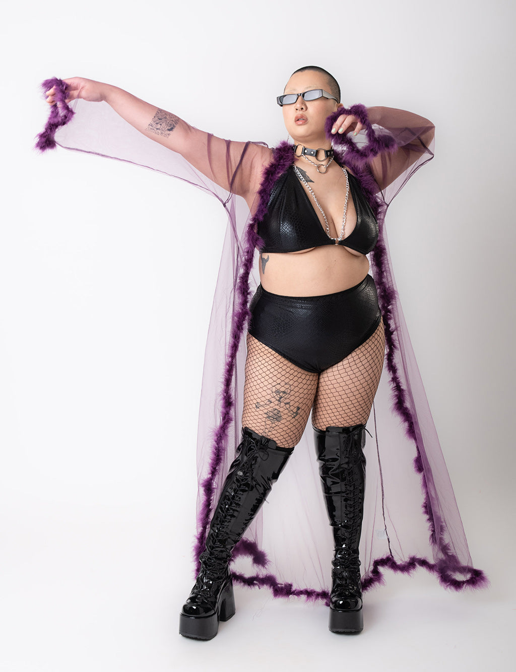 In the sexiest of purple tones, this kimono is everything chic! With a soft & fluffy trim, we love slipping this on to sass around the house or pop outside in it to live your fairy-fuelled fantasy!
