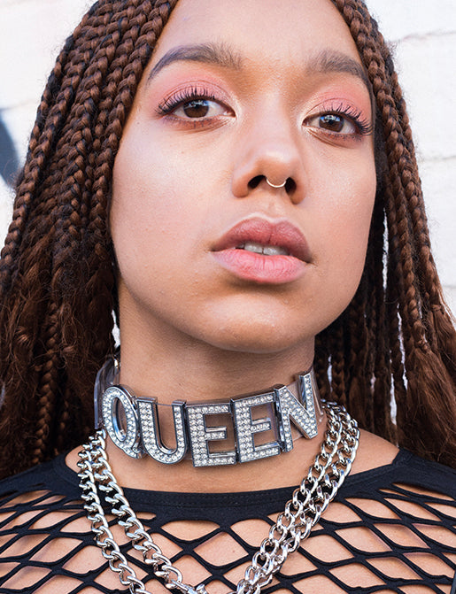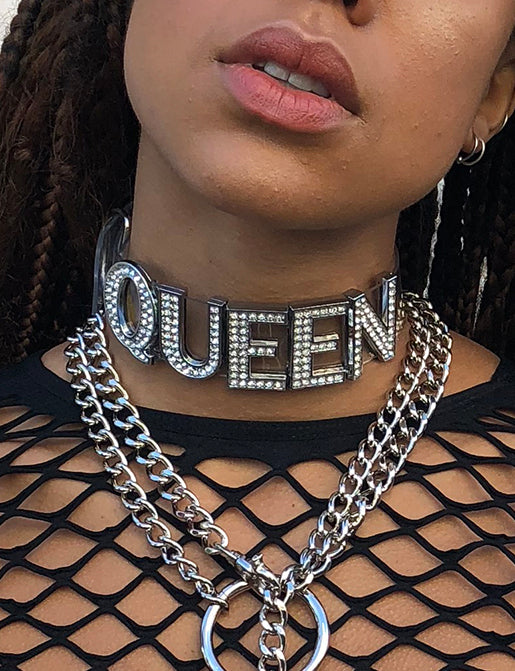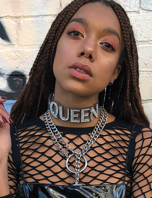 Be the QUEEN that you are baby! This easy to wear choker features a comfy buckle up back & SPARKLING with beautiful diamonte lettering. For the QUEENS out there!