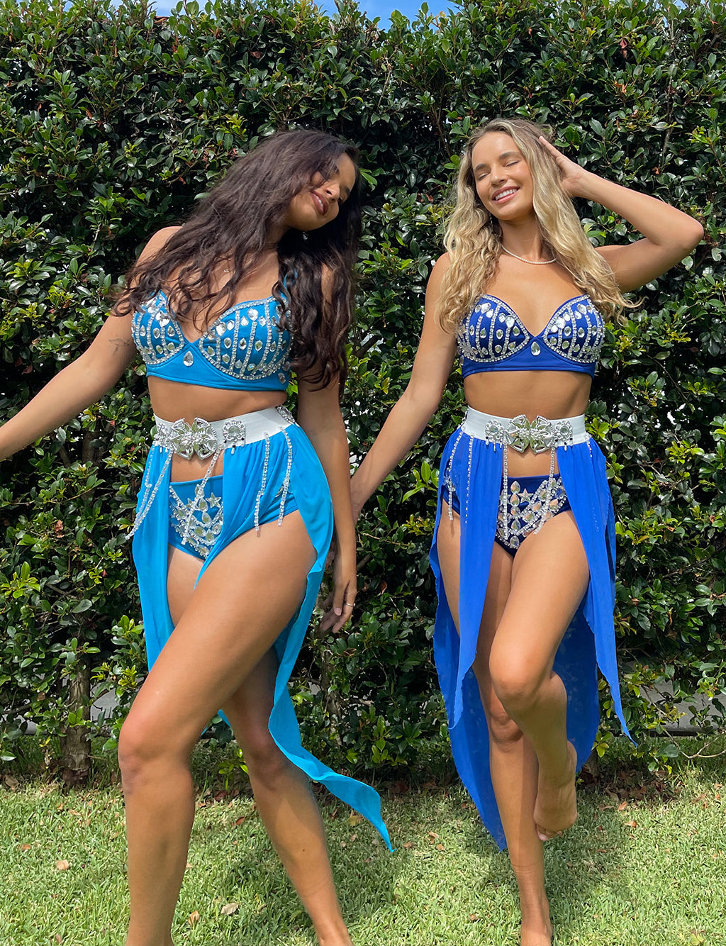 OUTFIT SORTED. The magical "Queen Of Splendour" Set - the hardest time you will have is trying to decide what colour you want to rep! Available in over 9 colours with a beautiful, bedazzled bra, matching panties & skirt overlay, all you have to worry about is your glitter!