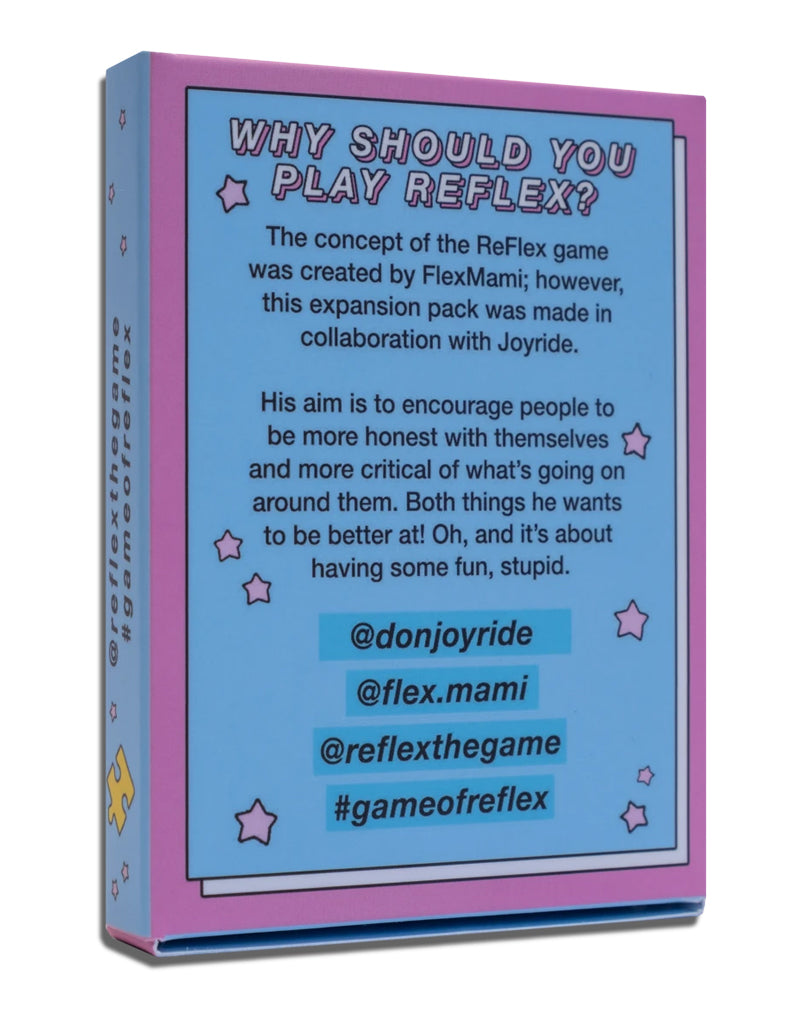 Either pop this expansion pack in with your current Reflex Cards or use it as it's own game, the Joyride expansion pack is so much fun! Get ready for the hard hitting questions to be asked that will make you think much deeper about your answer & why you've answered that way 🤘