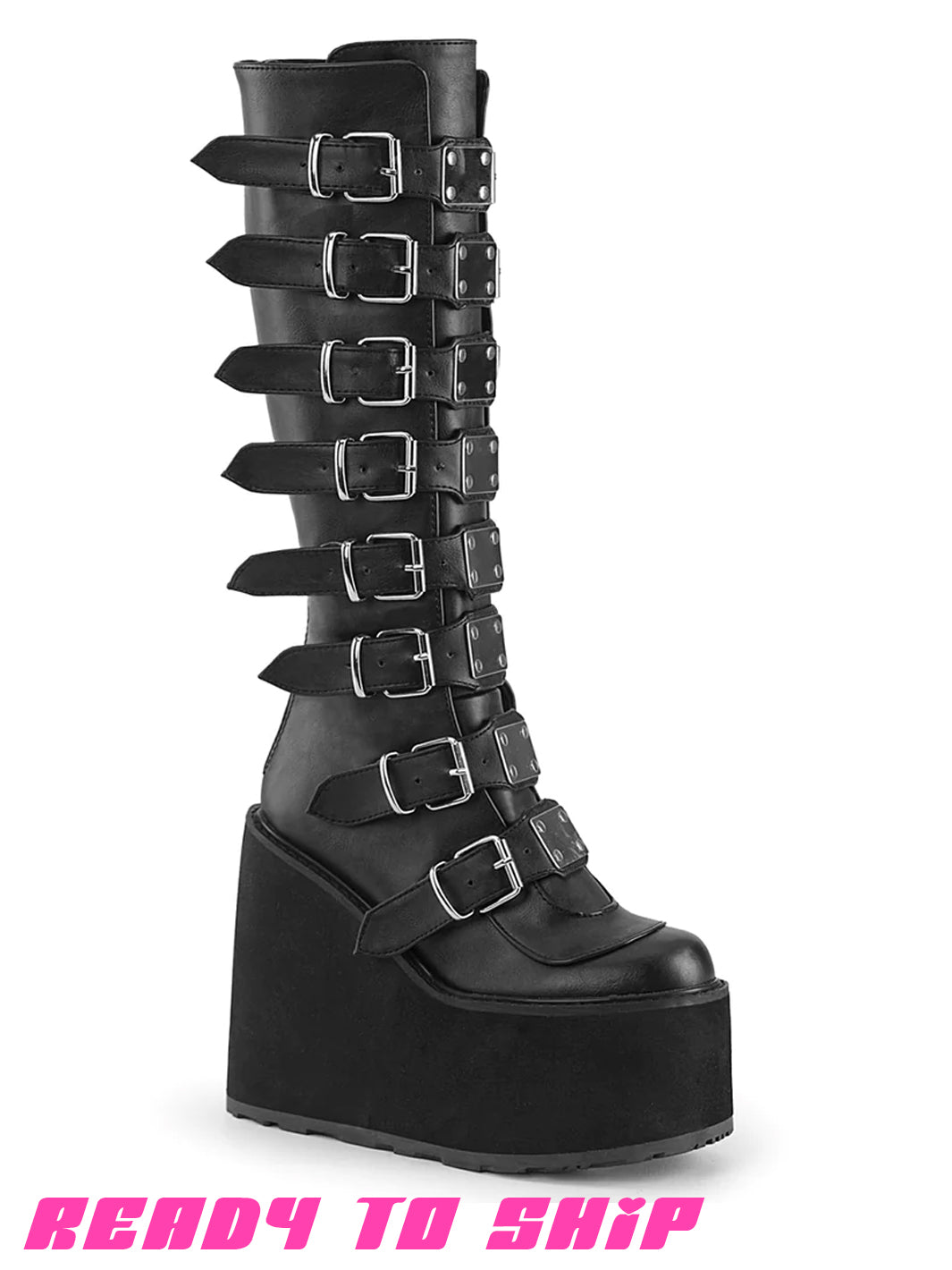 DEMONIA SWING 815 BOOTS - BLACK VEGAN LEATHER