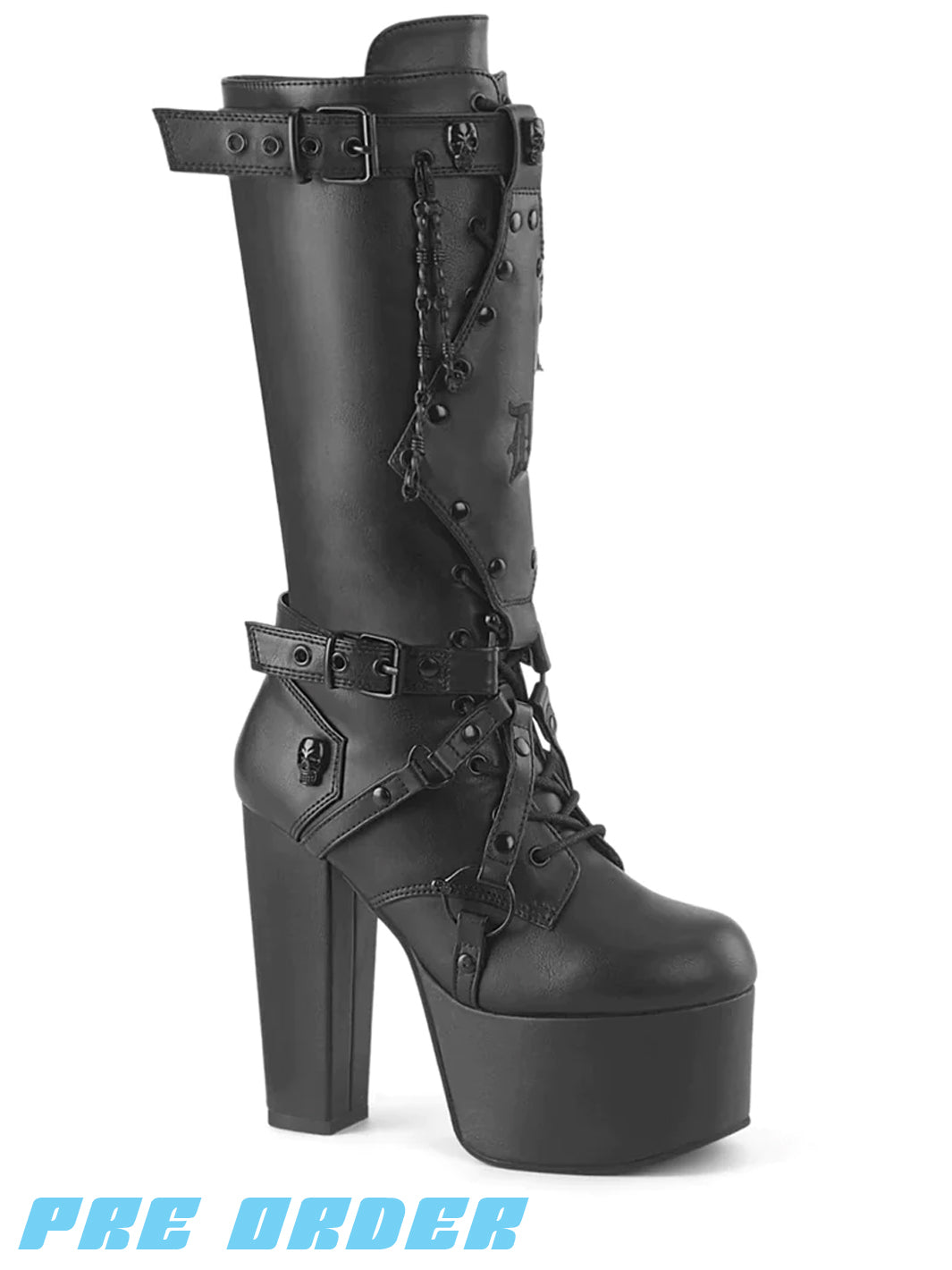 DEMONIA TORMENT-218 BOOTS - BLACK VEGAN LEATHER ✰ PRE ORDER ✰