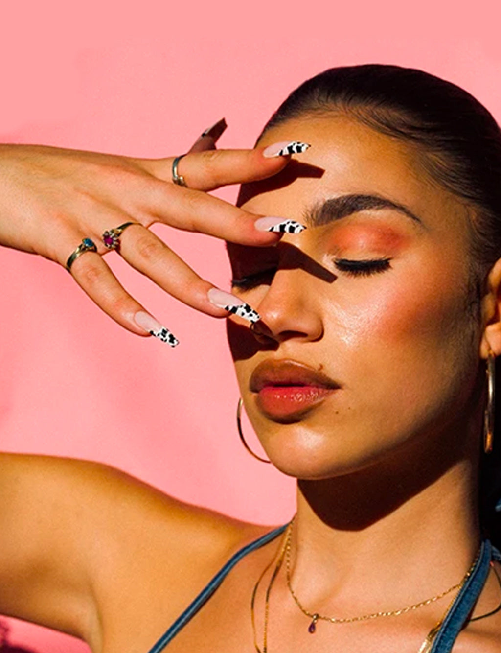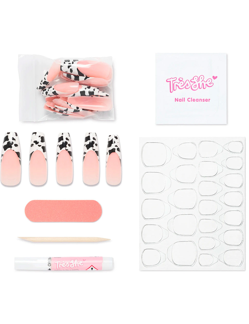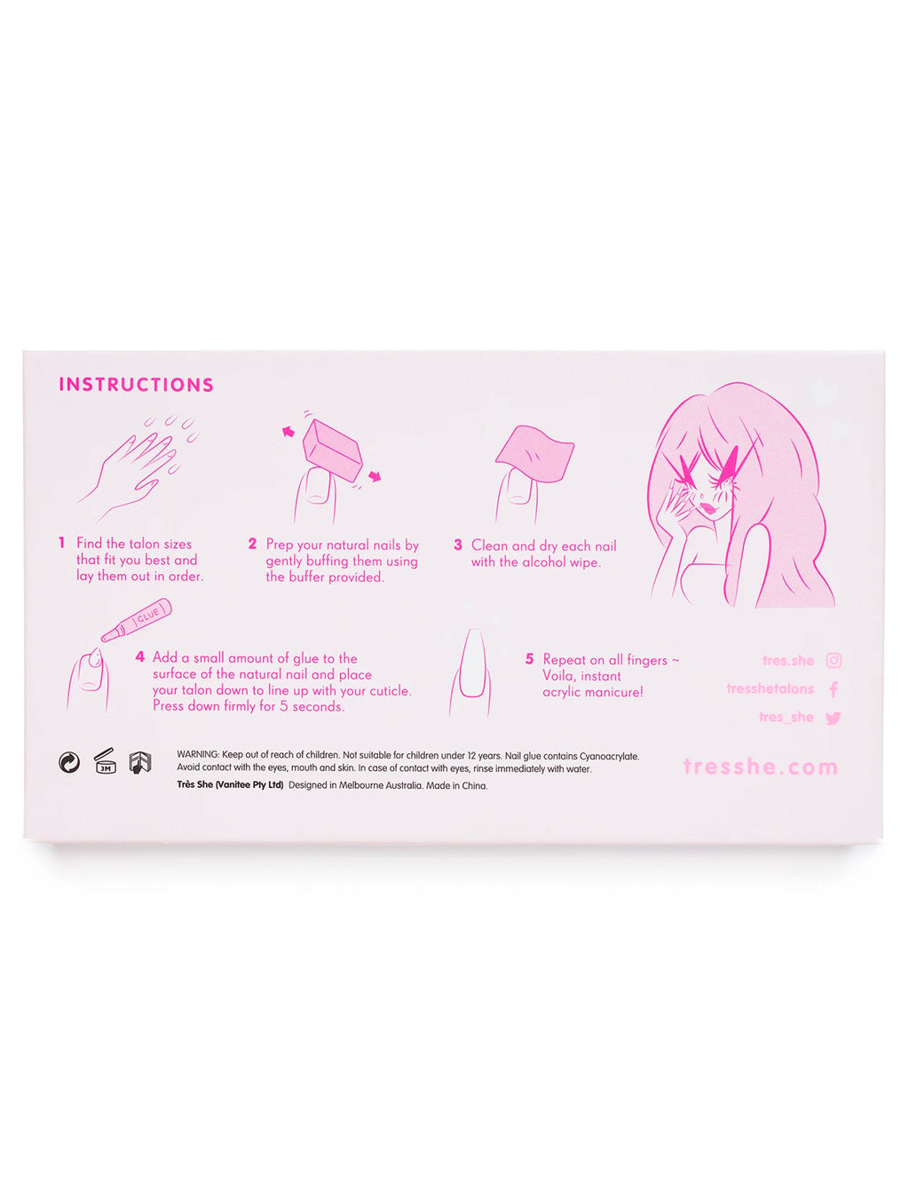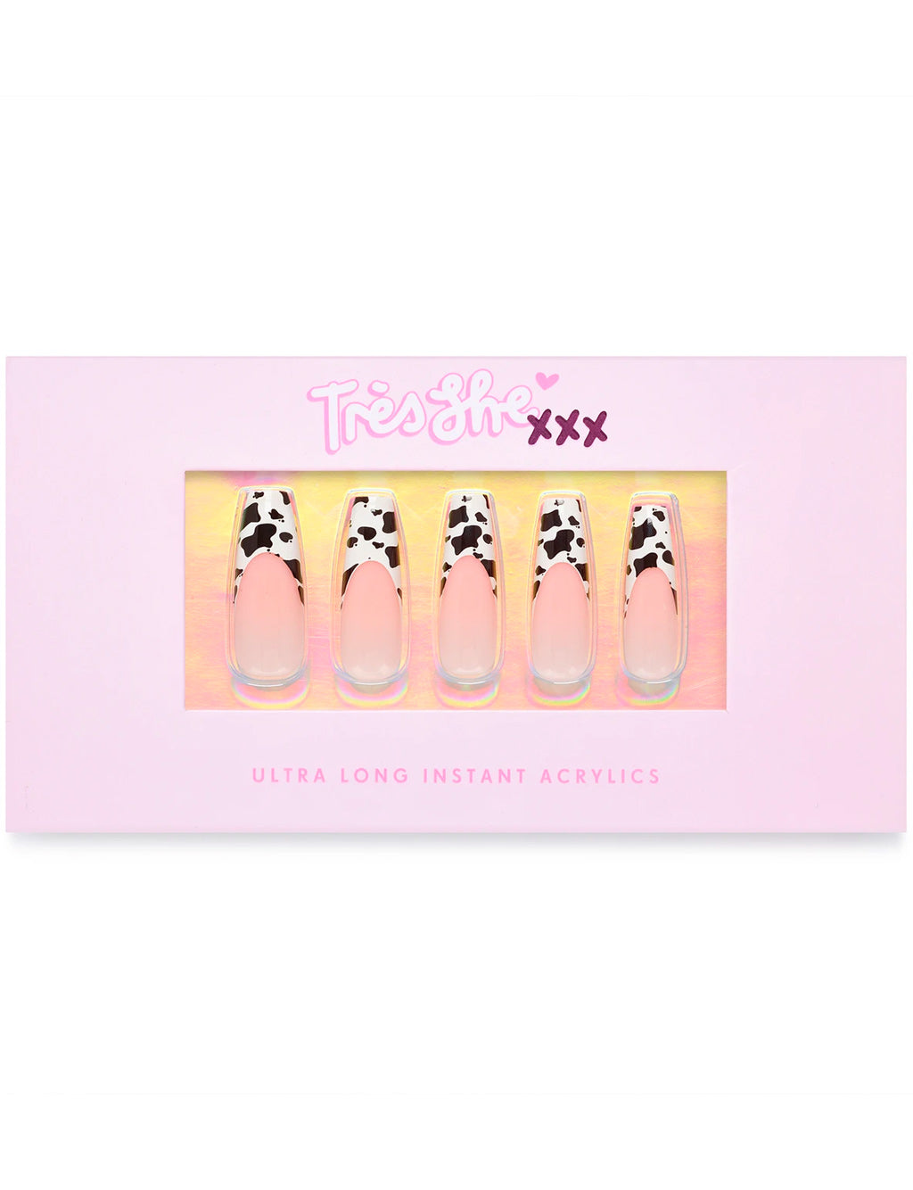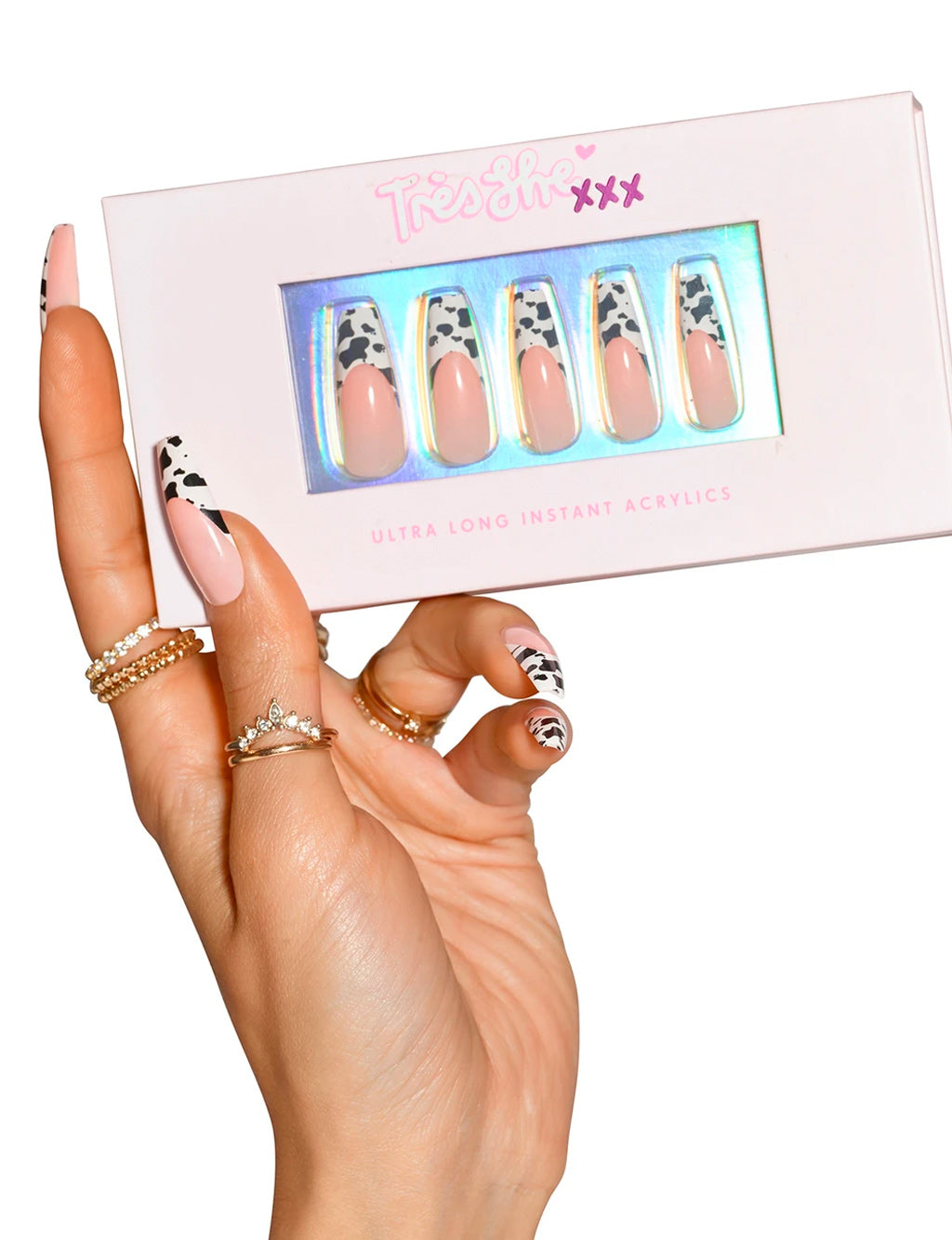 Instant manicure?! Say less, Tres She (pronounced trashy) Instant Acrylic’s bring the salon home with a range of press on nail designs decked out in gem embellishments, cow print, flame print, milky nails and much more!