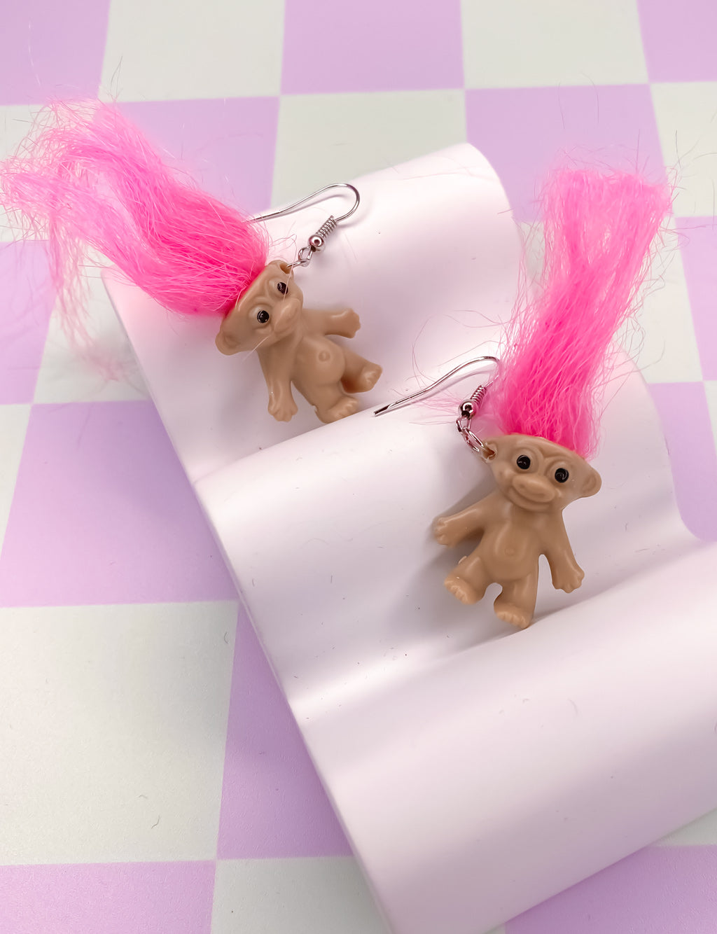 Get nostalgic by hanging these fuzzy haired beauties from your ears! We love this cute baby-pink haired cutie!