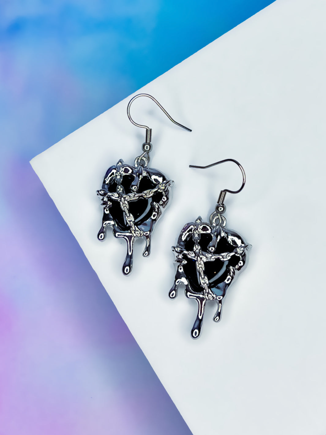 These earrings are so magical! We're obsessed with the chain melting heart detail and coloured stone.
